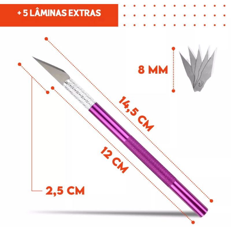 Estilete de precisão para artesanato - Bisturi com 5 lâminas refil