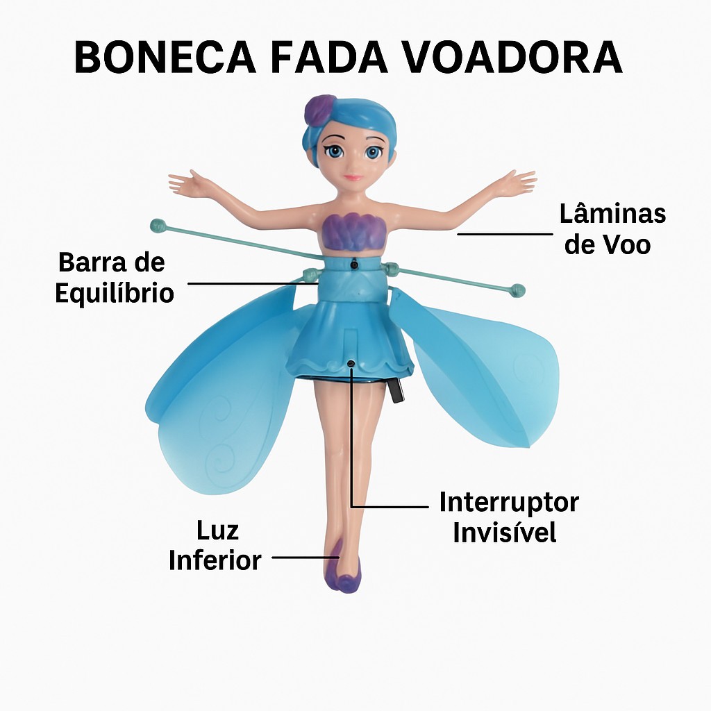 Boneca Fada Voadora com Sensor de Mão - Brinquedo Drone Fadinha Mágica