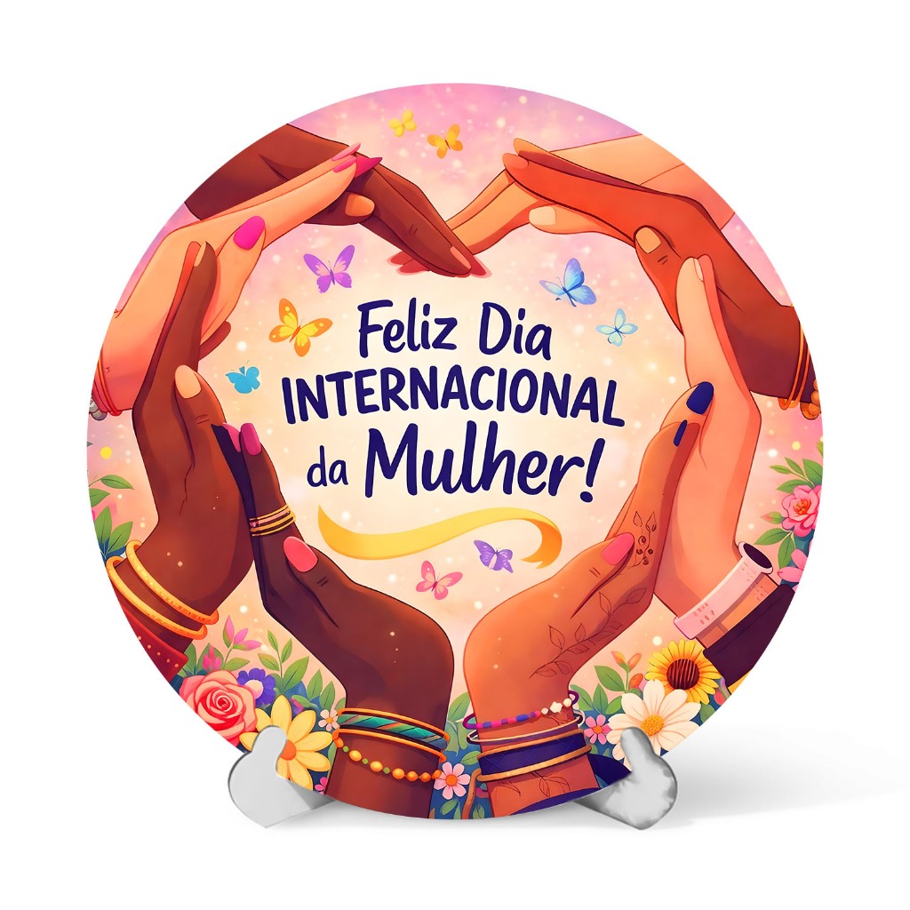 Painel Redondo 8 De Março Mulher Tecido Sublimado C/ Elástico 50x50cm