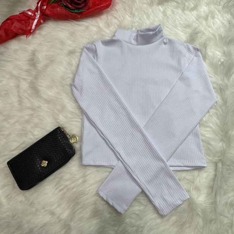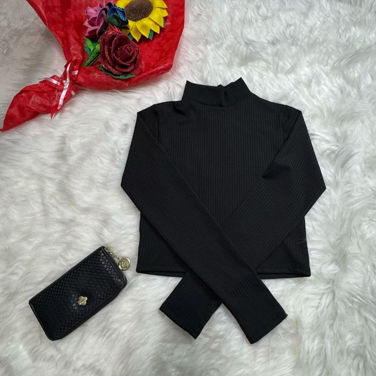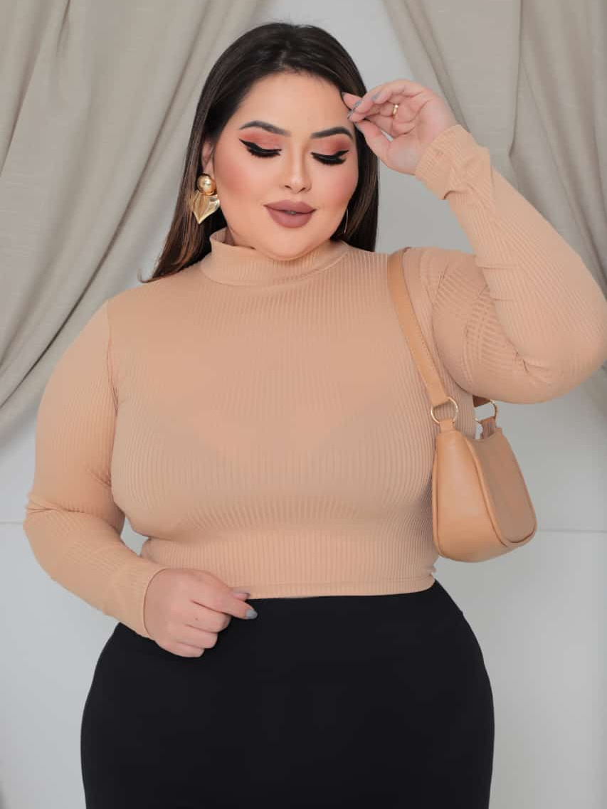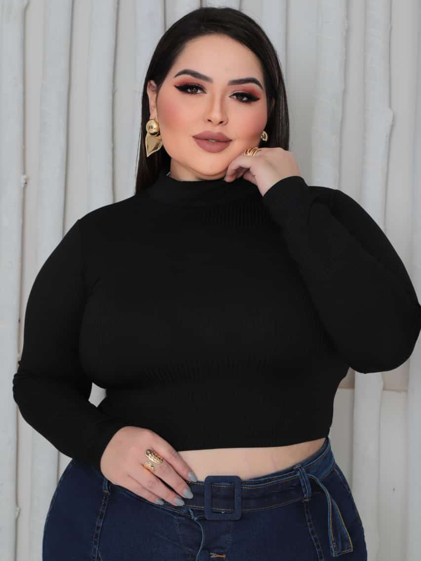Blusa Feminina Cropped Lisa em Tecido Canelado Tamanho M e GG - Gola Alta | Manga Longa