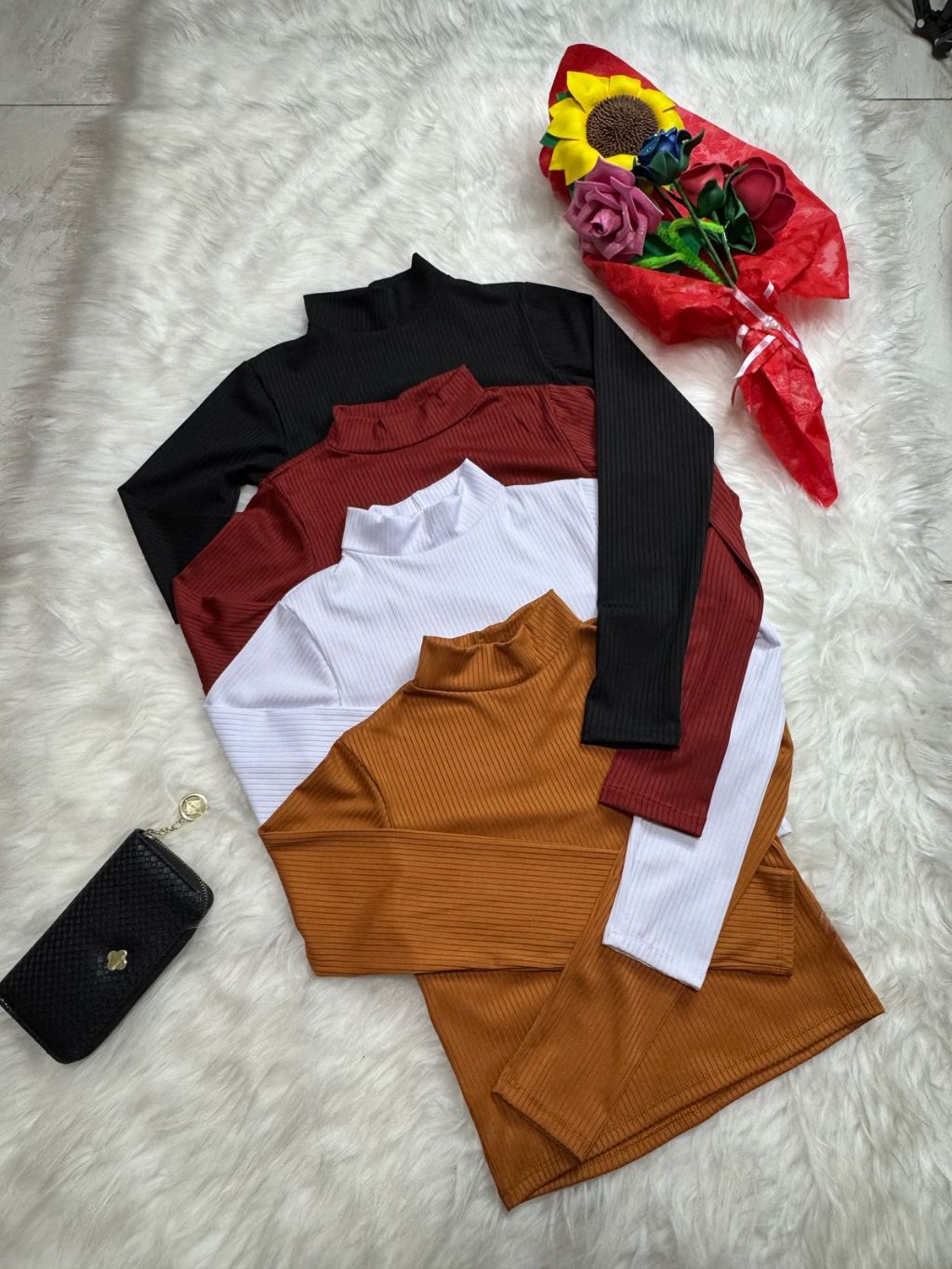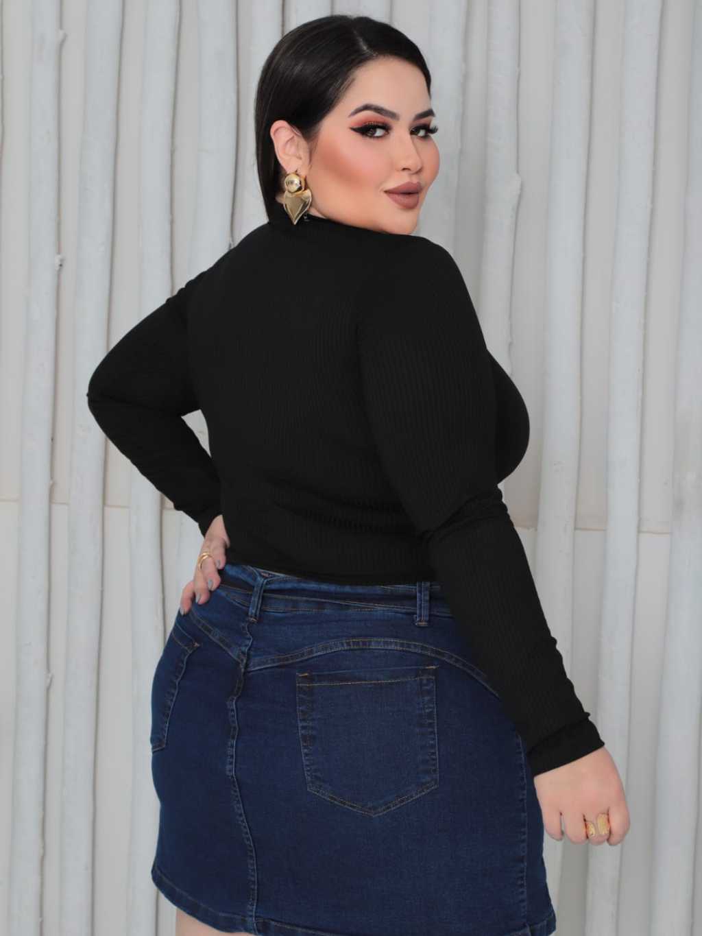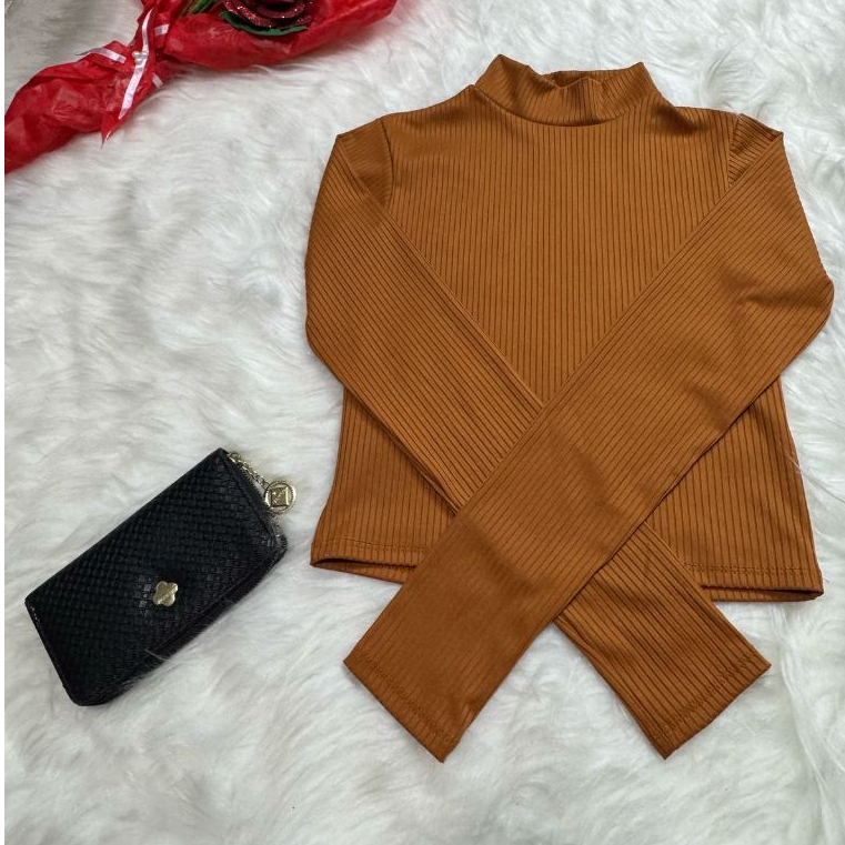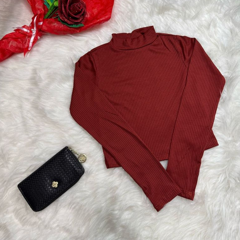 Blusa Feminina Cropped Lisa em Tecido Canelado Tamanho M e GG - Gola Alta | Manga Longa
