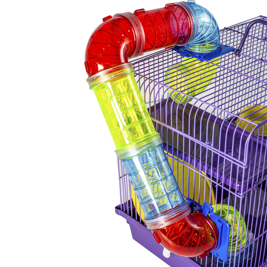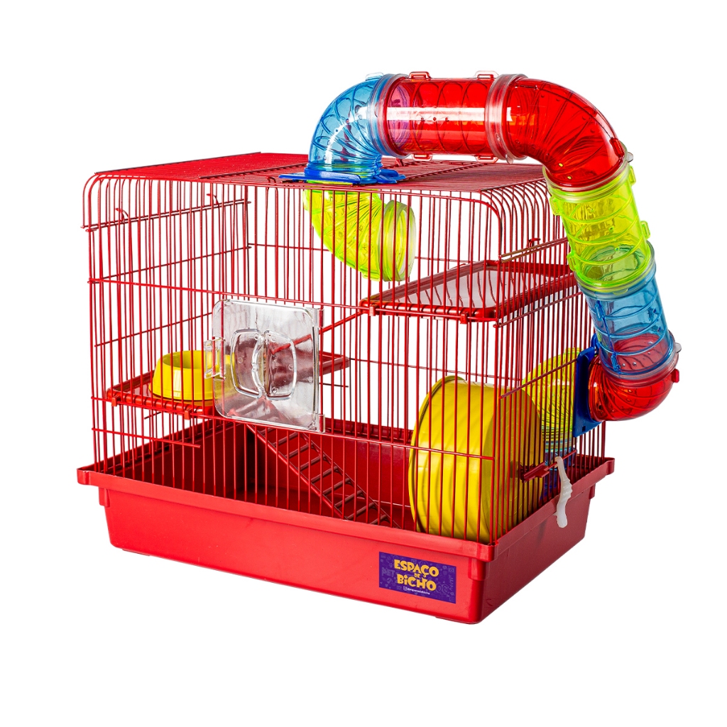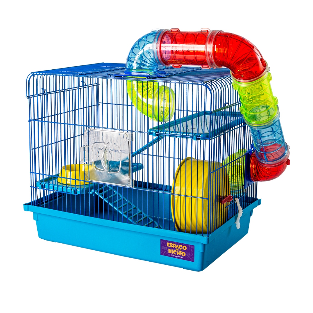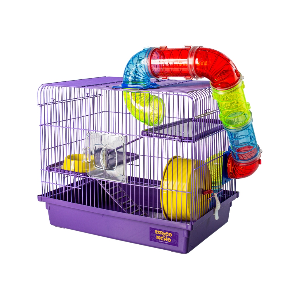 Gaiola Hamster Tubo 3 Andares Espaco De Bicho Completa com Rodinha