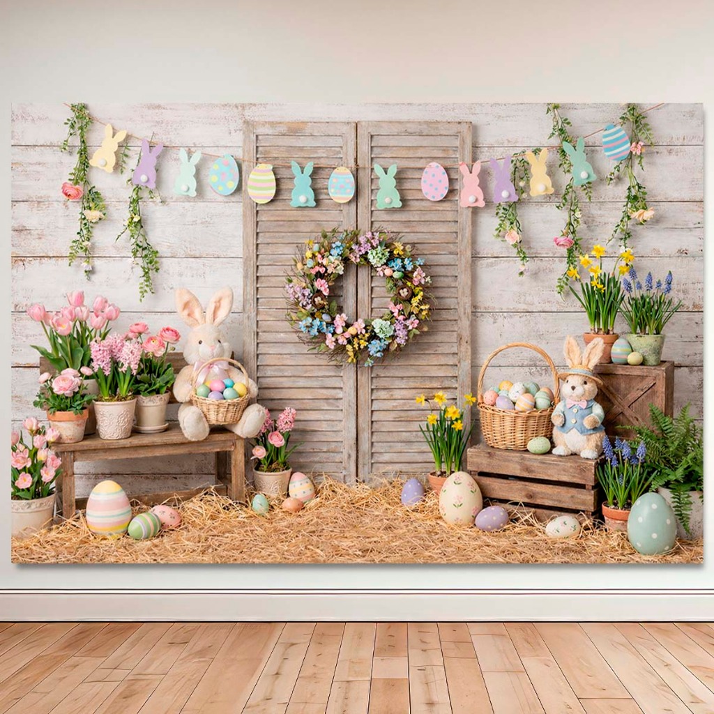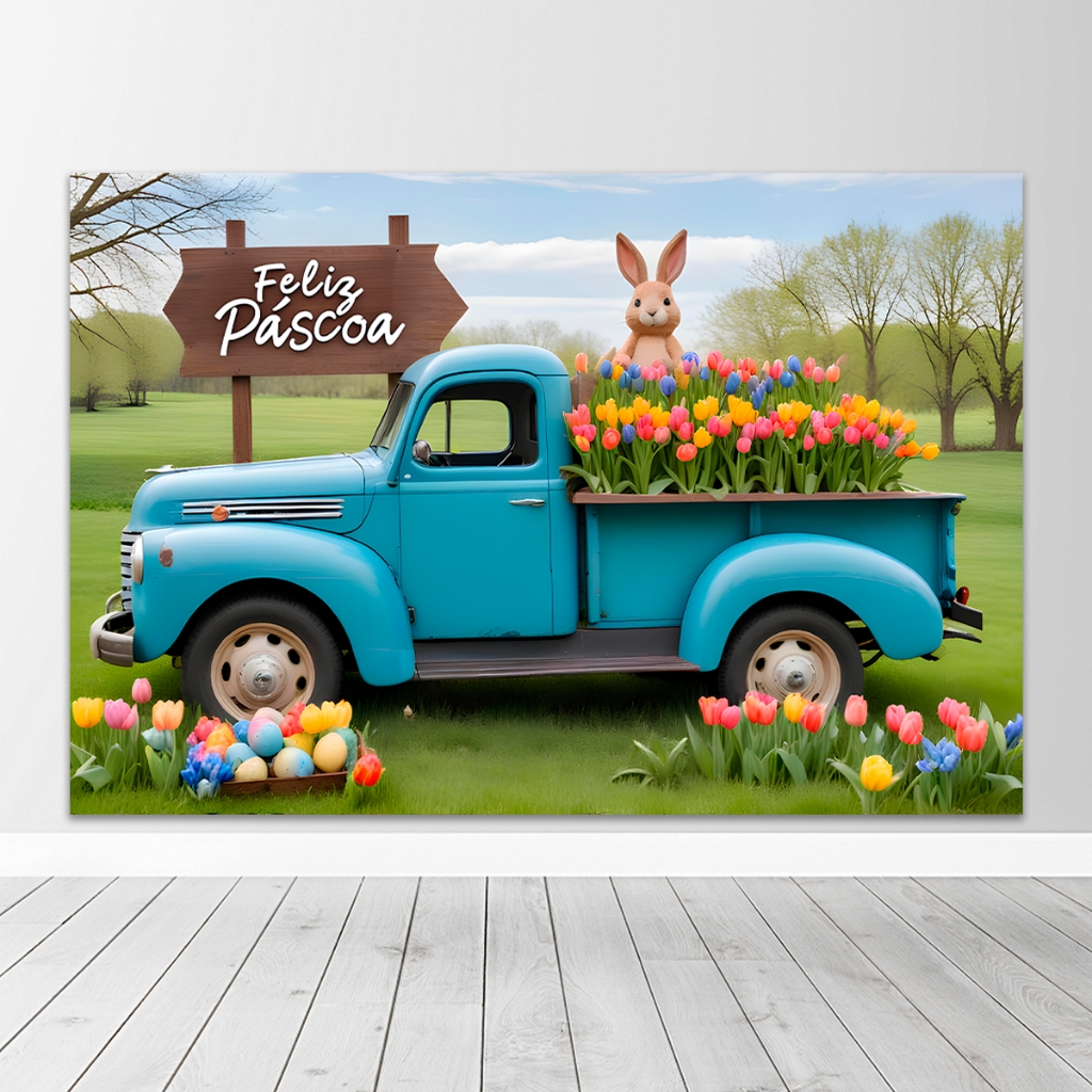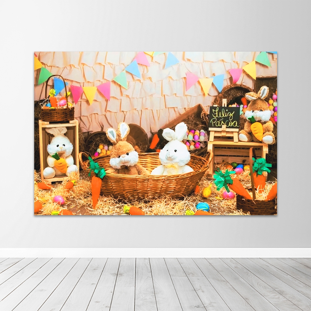 Painel Fundo Fotográfico Retangular Newborn Feliz Páscoa 1,50x2,20 Mt