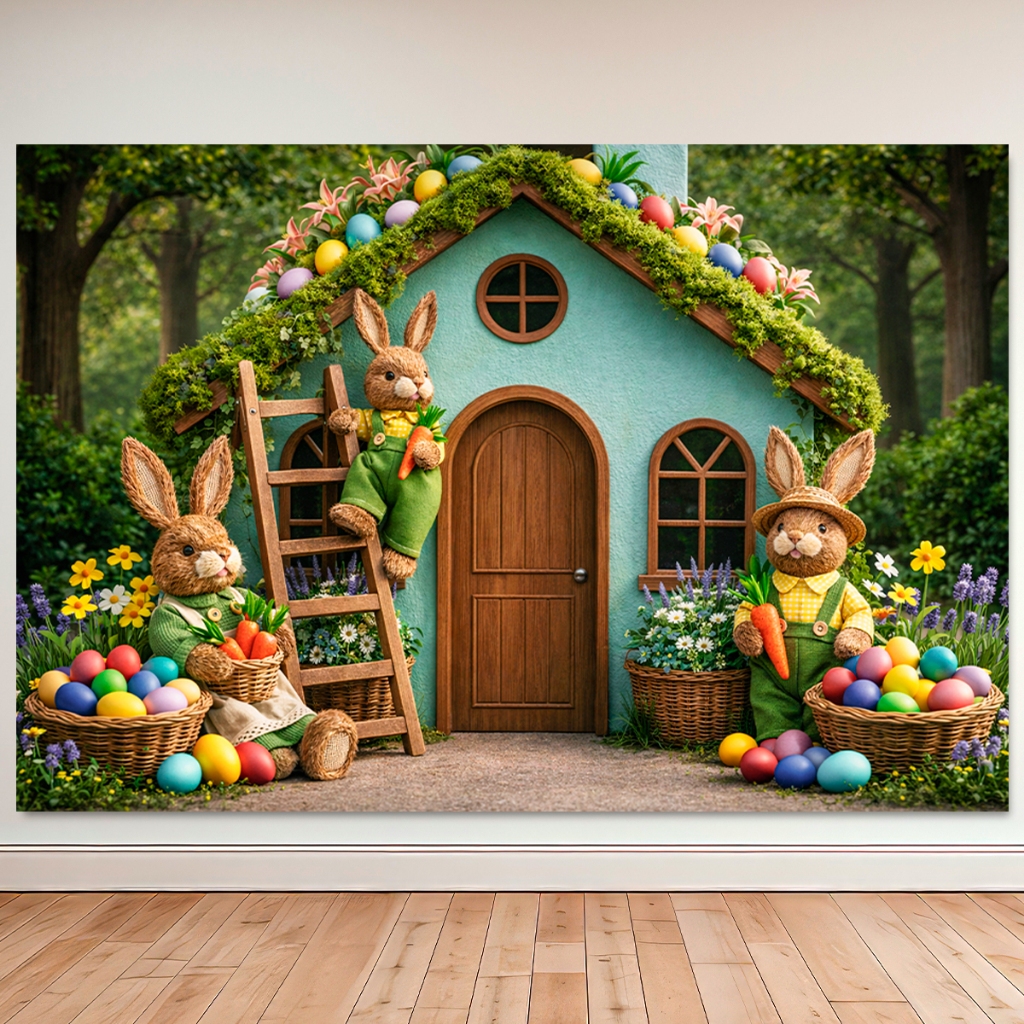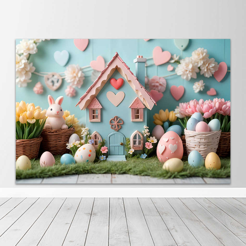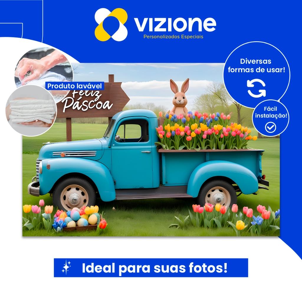 Painel Fundo Fotográfico Retangular Newborn Feliz Páscoa 1,50x2,20 Mt