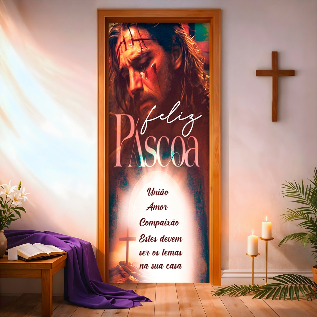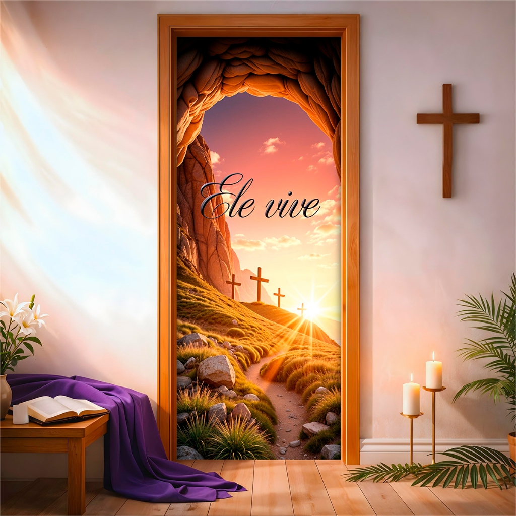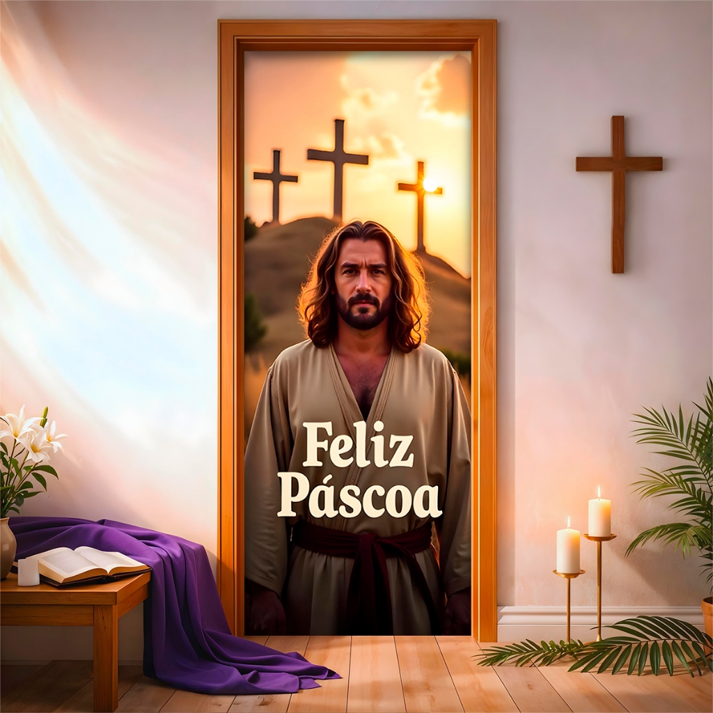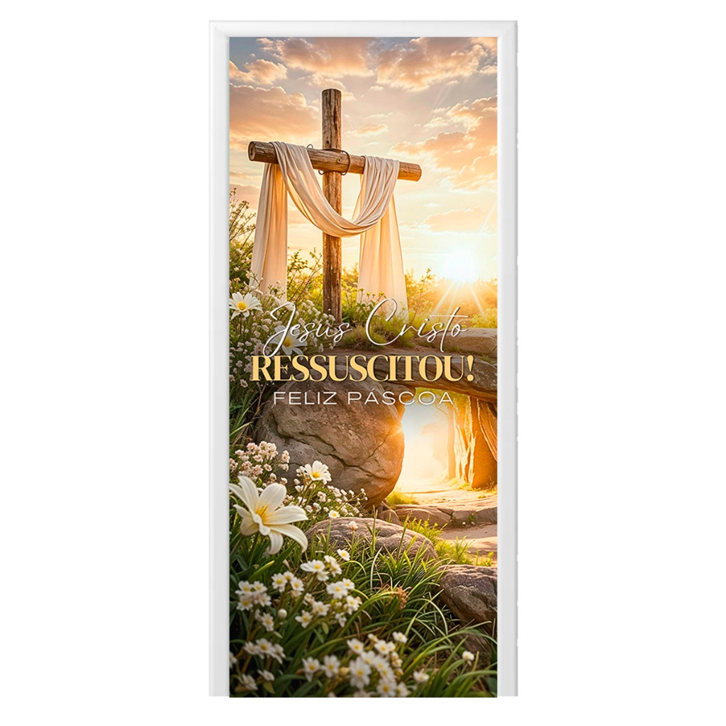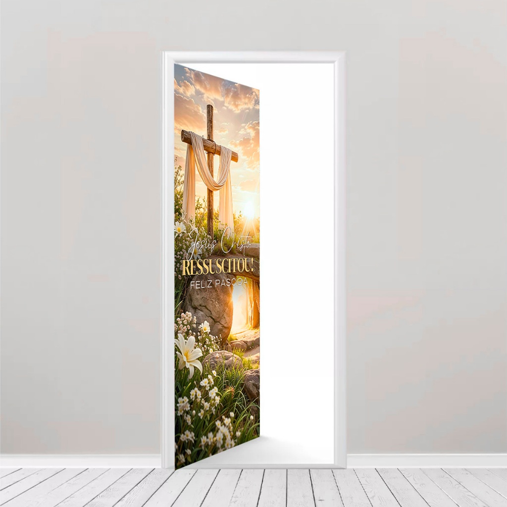 Capa de Porta C/ Elástico Páscoa Cristã Ressurreição de Cristo 0,85 X 2,10 Mt