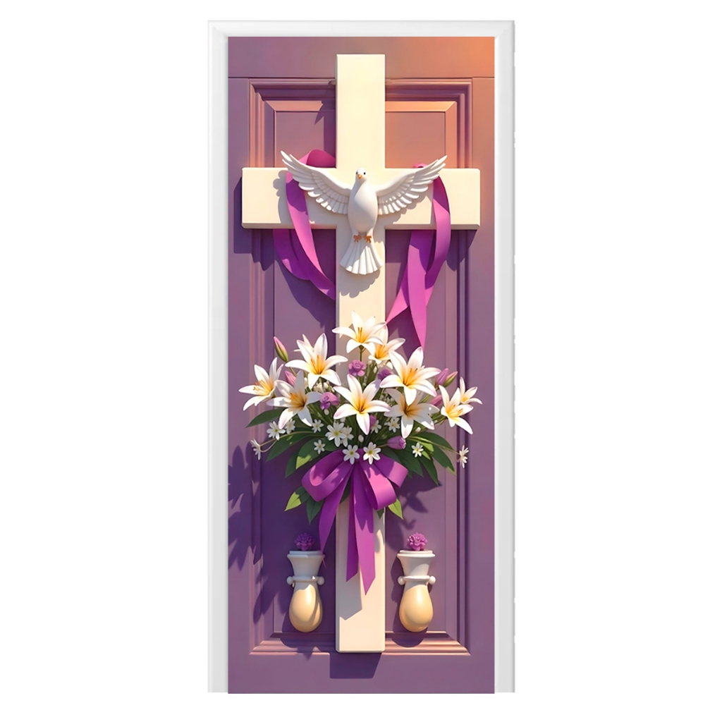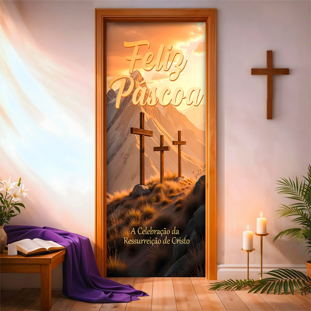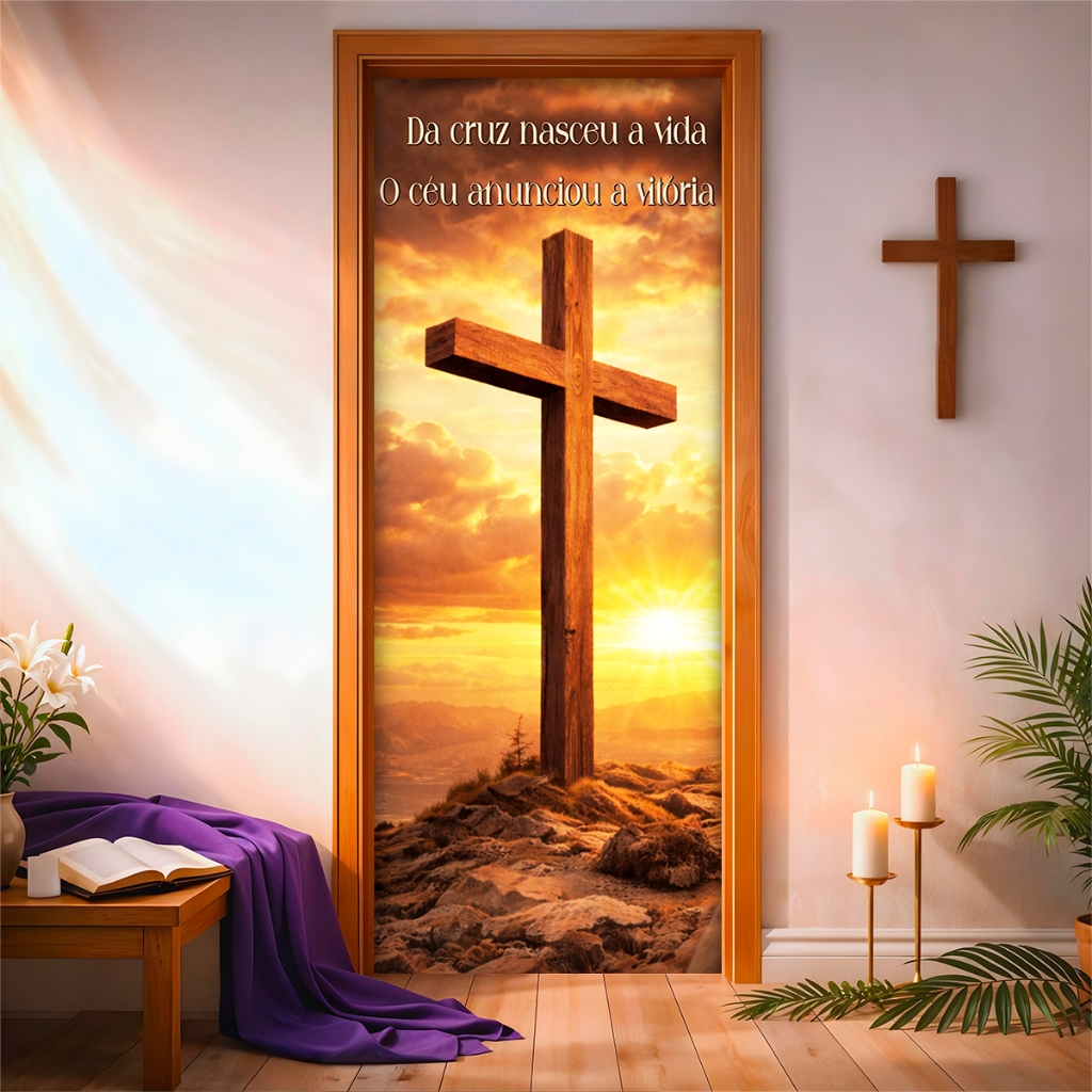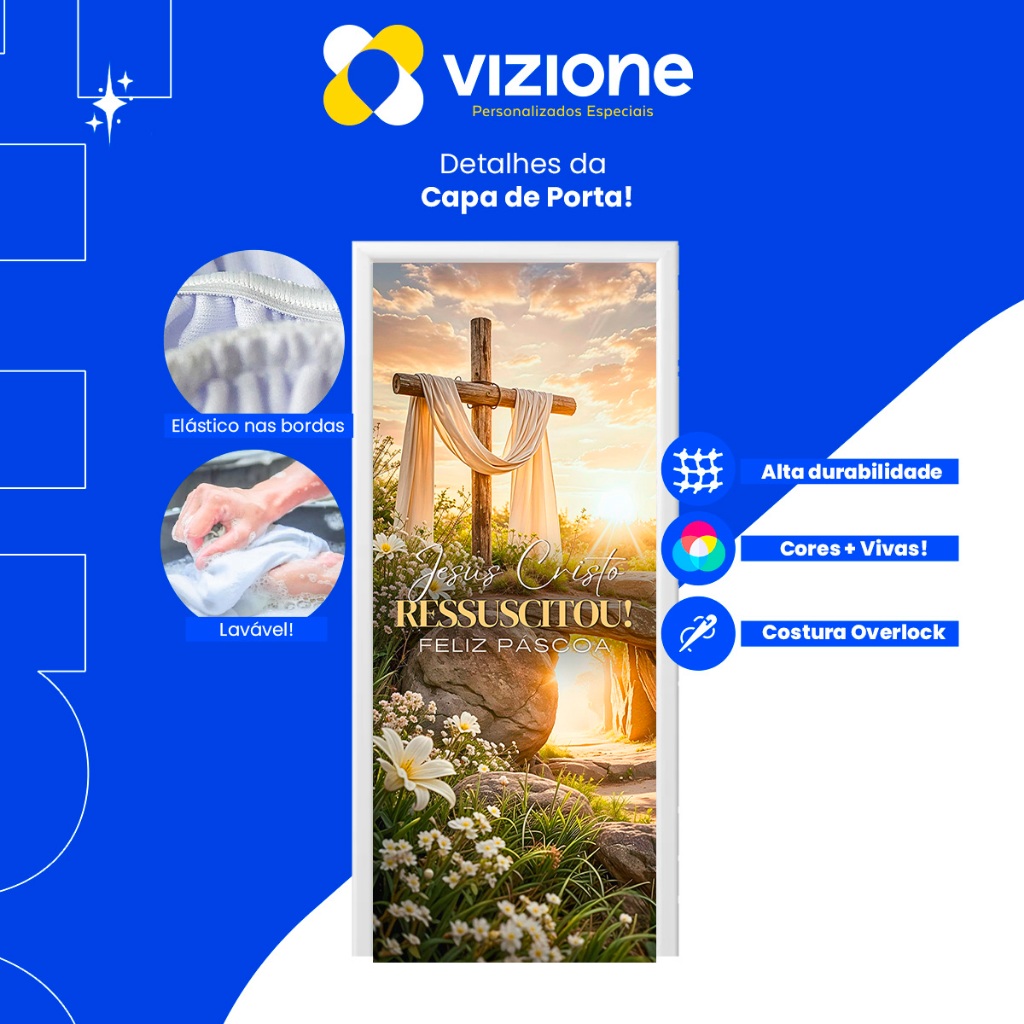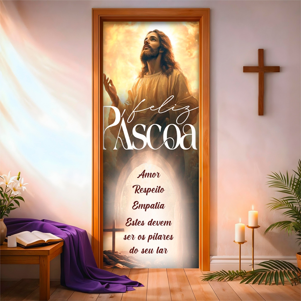 Capa de Porta C/ Elástico Páscoa Cristã Ressurreição de Cristo 0,85 X 2,10 Mt