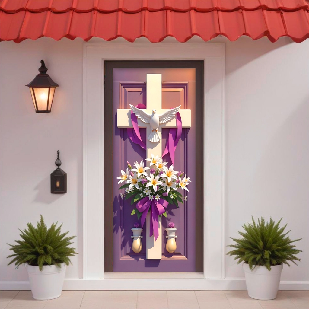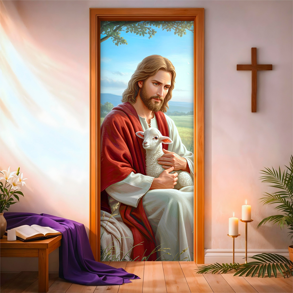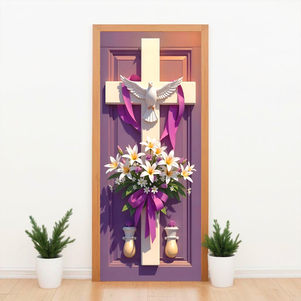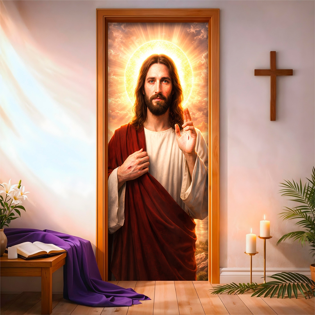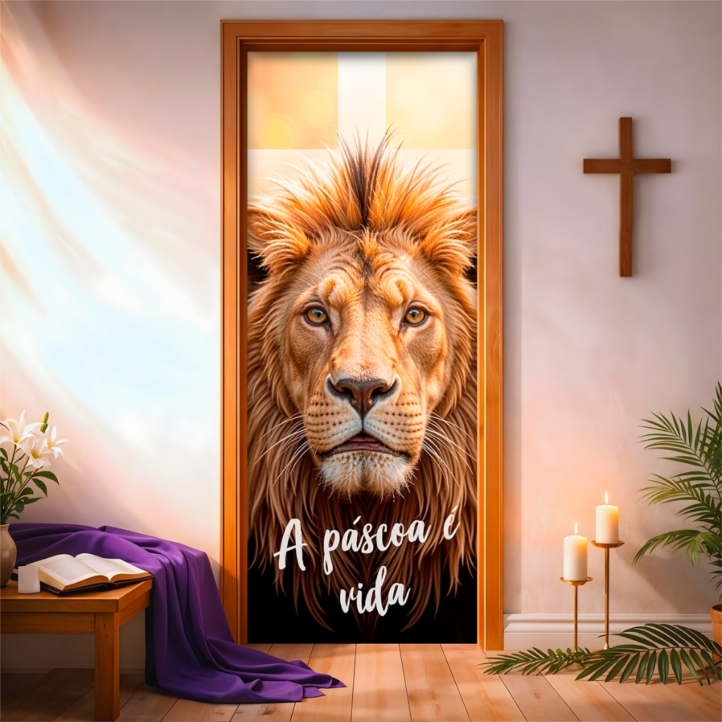 Capa de Porta C/ Elástico Páscoa Cristã Ressurreição de Cristo 0,85 X 2,10 Mt