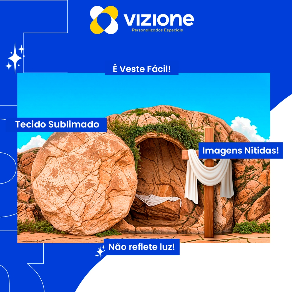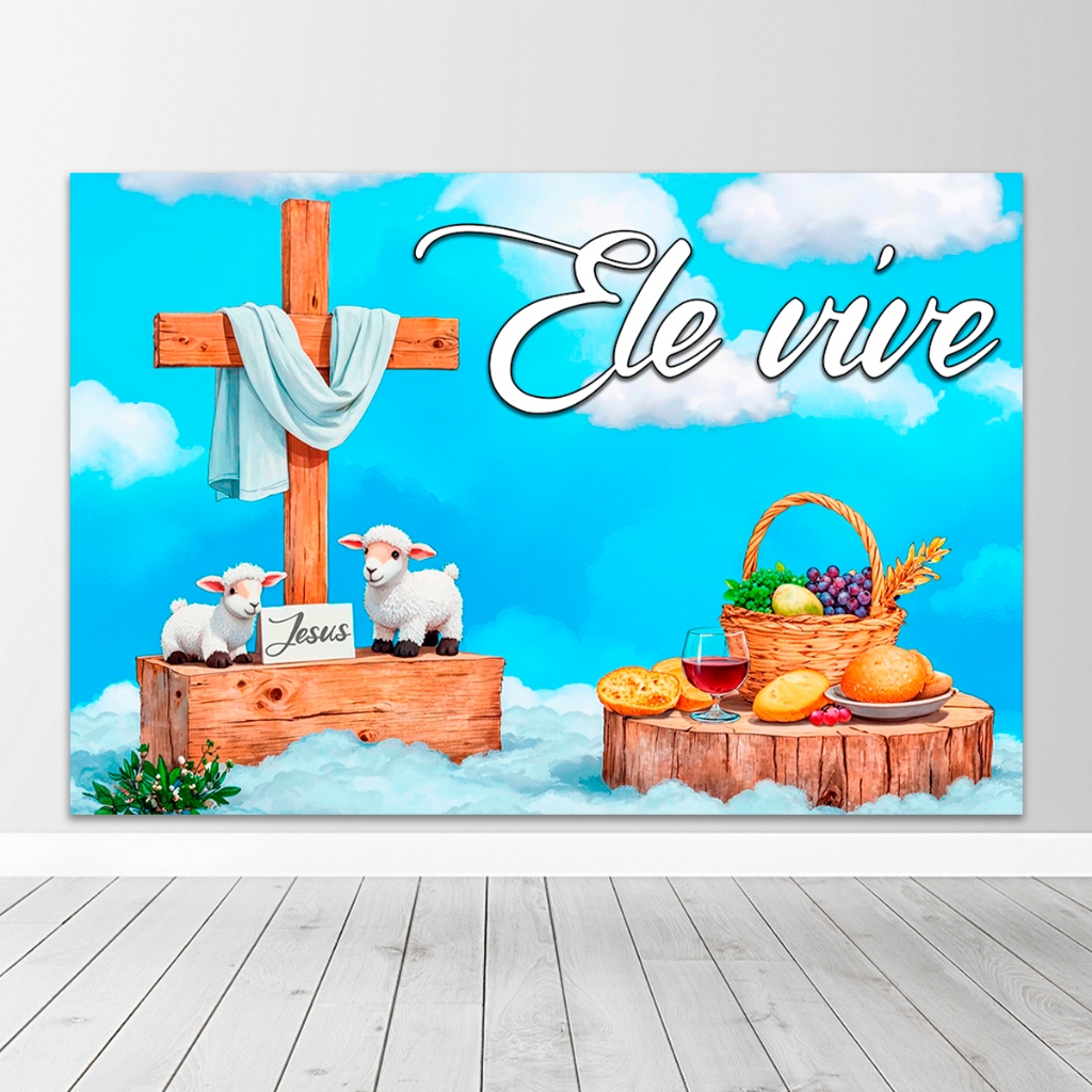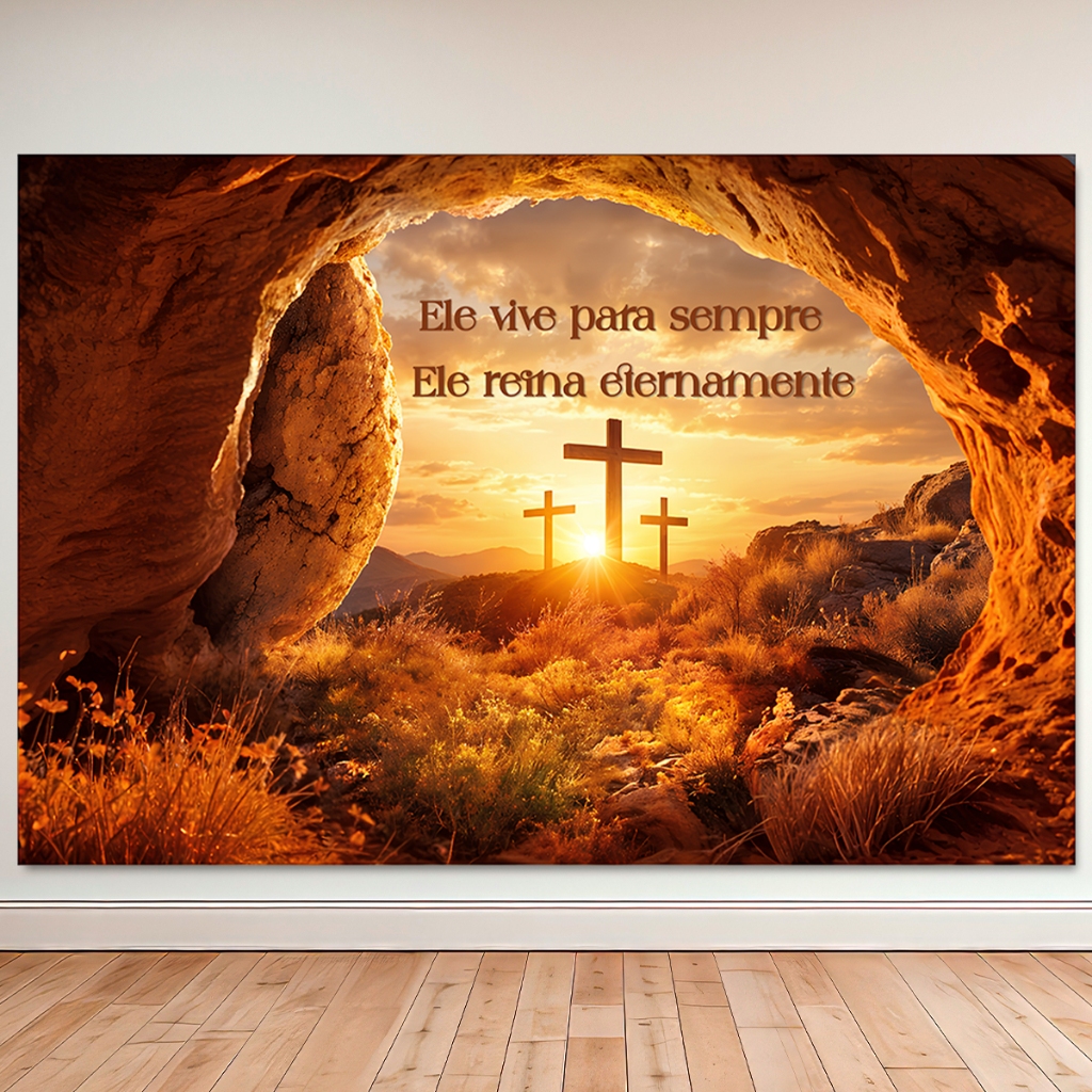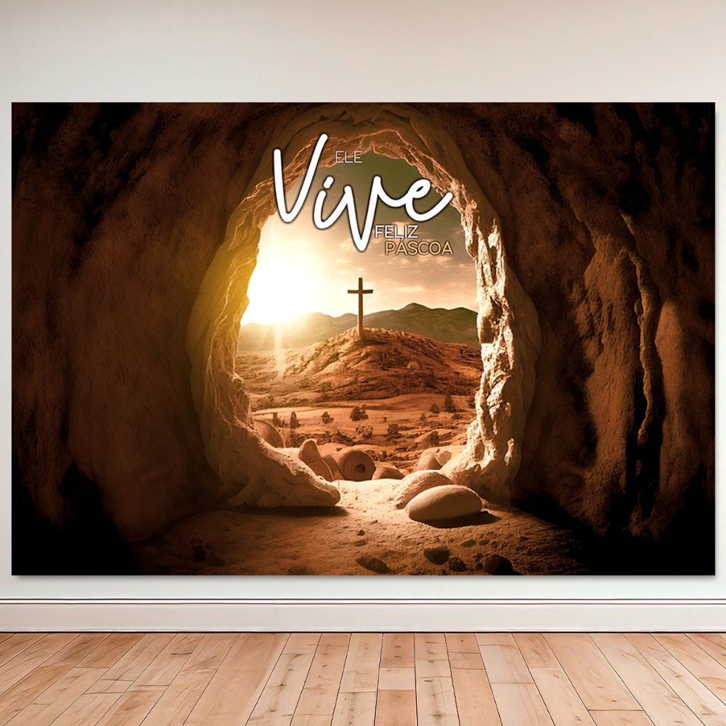 Painel Fundo Fotográfico Páscoa Religiosa Ele Vive Tecido Sublimado 1,5x2,2 Mt