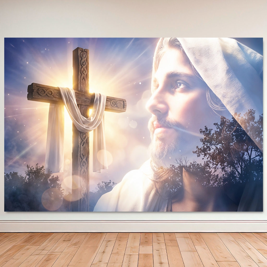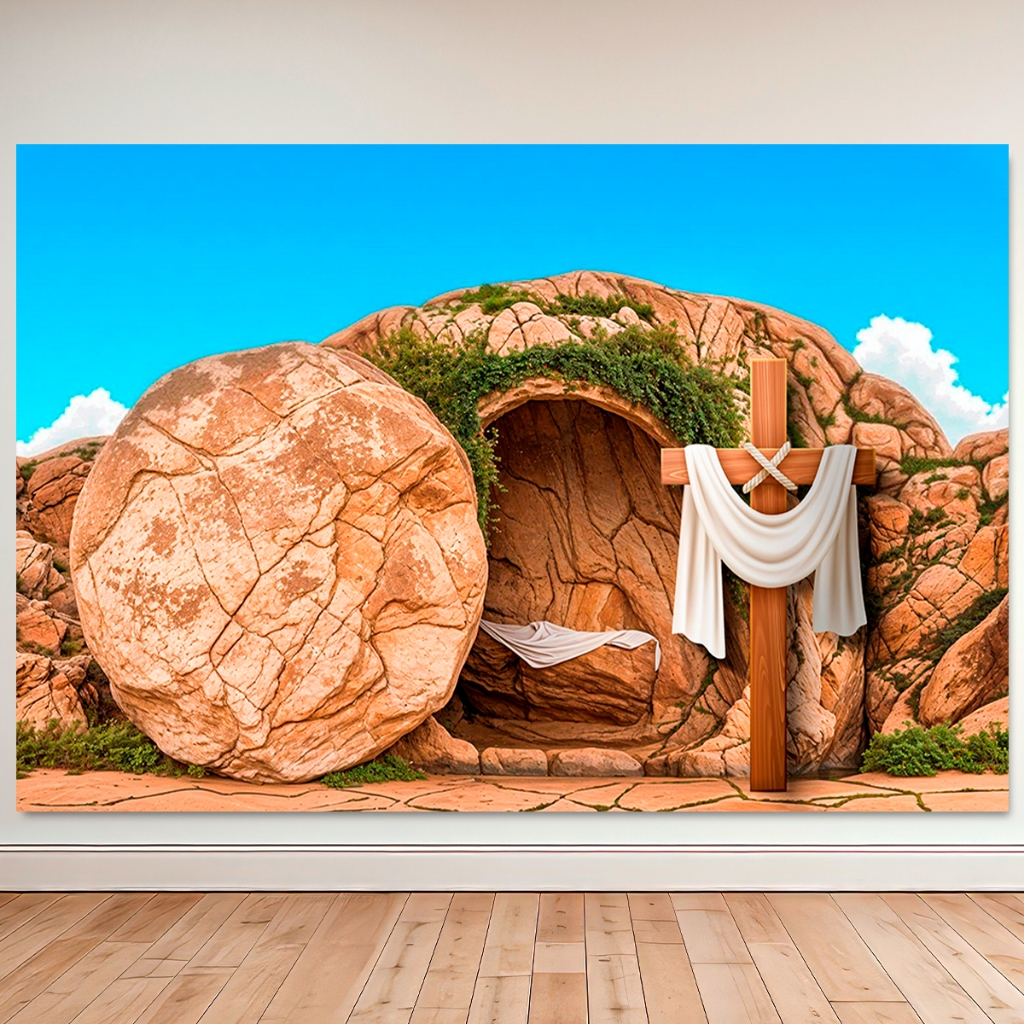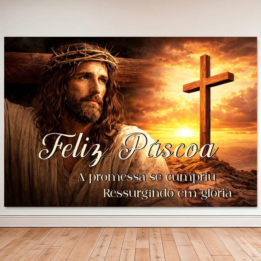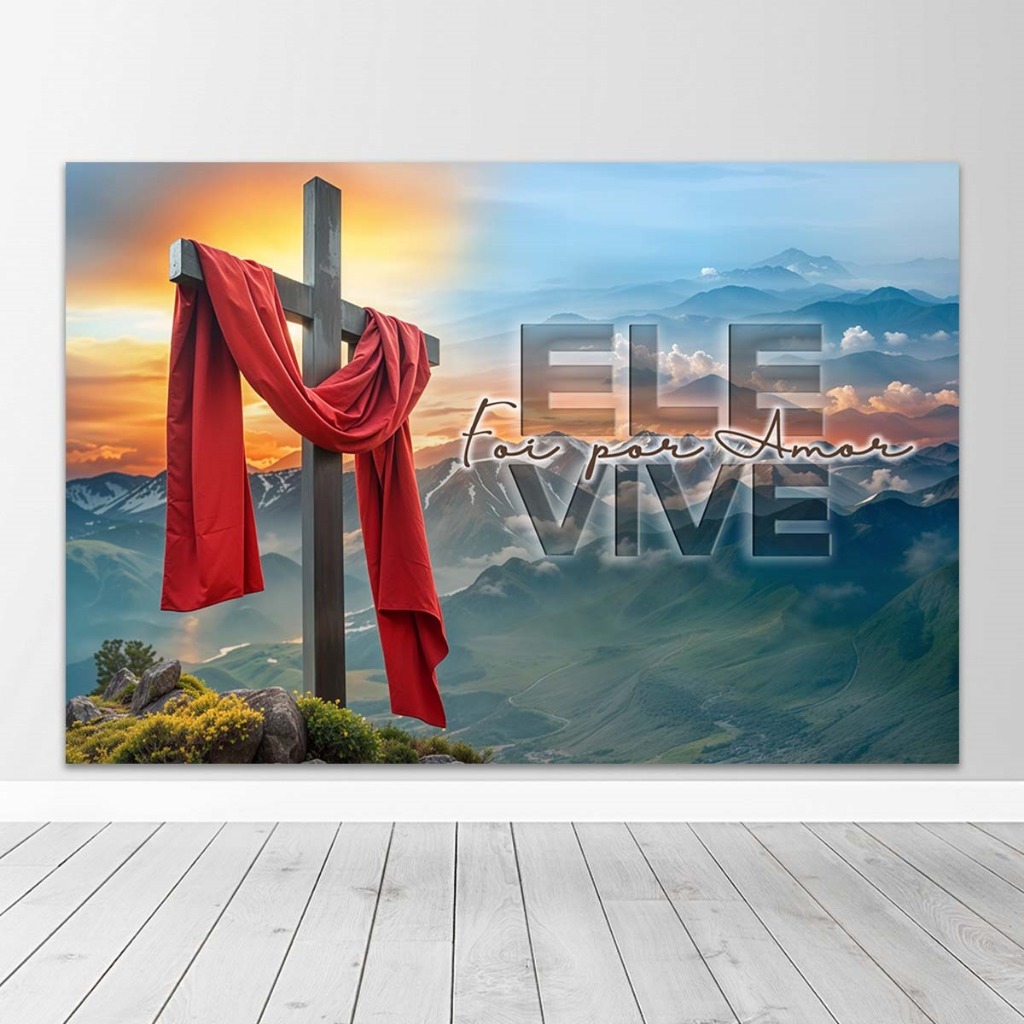 Painel Fundo Fotográfico Páscoa Religiosa Ele Vive Tecido Sublimado 1,5x2,2 Mt