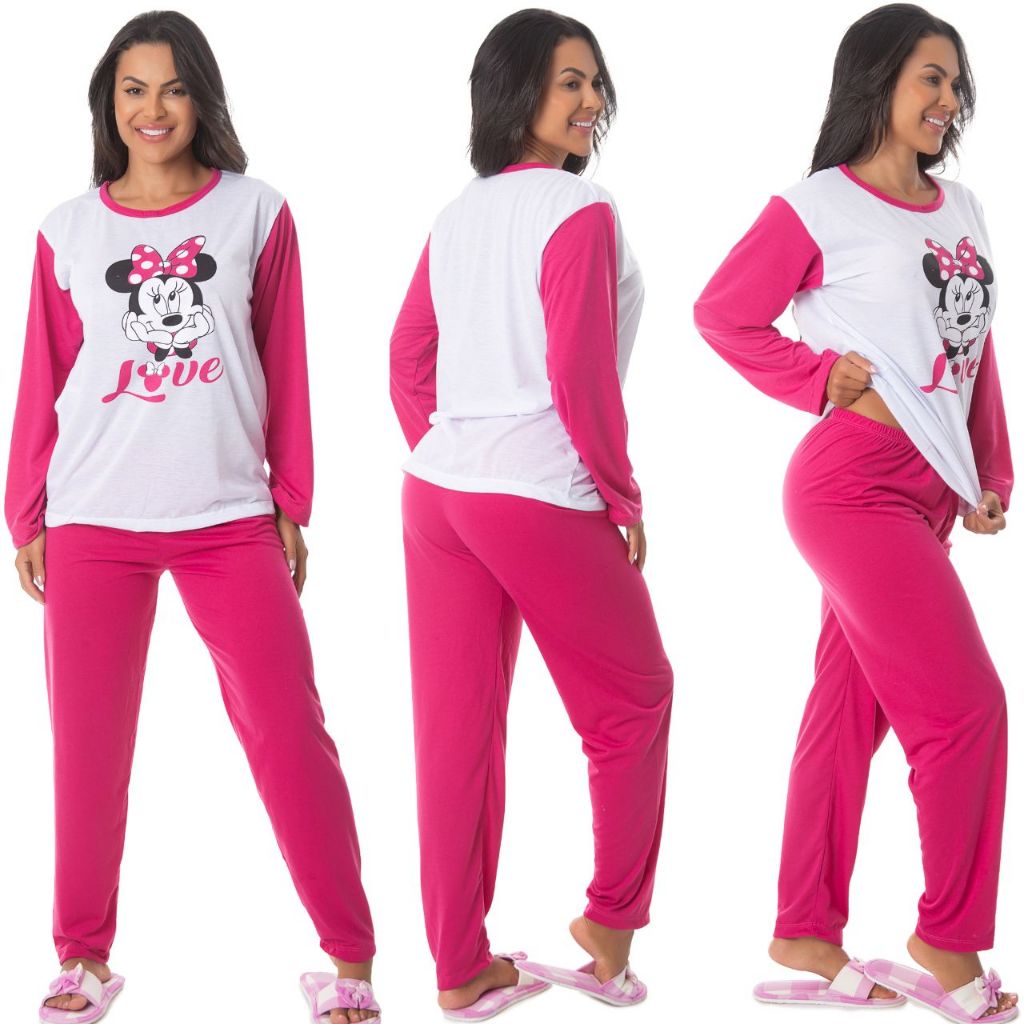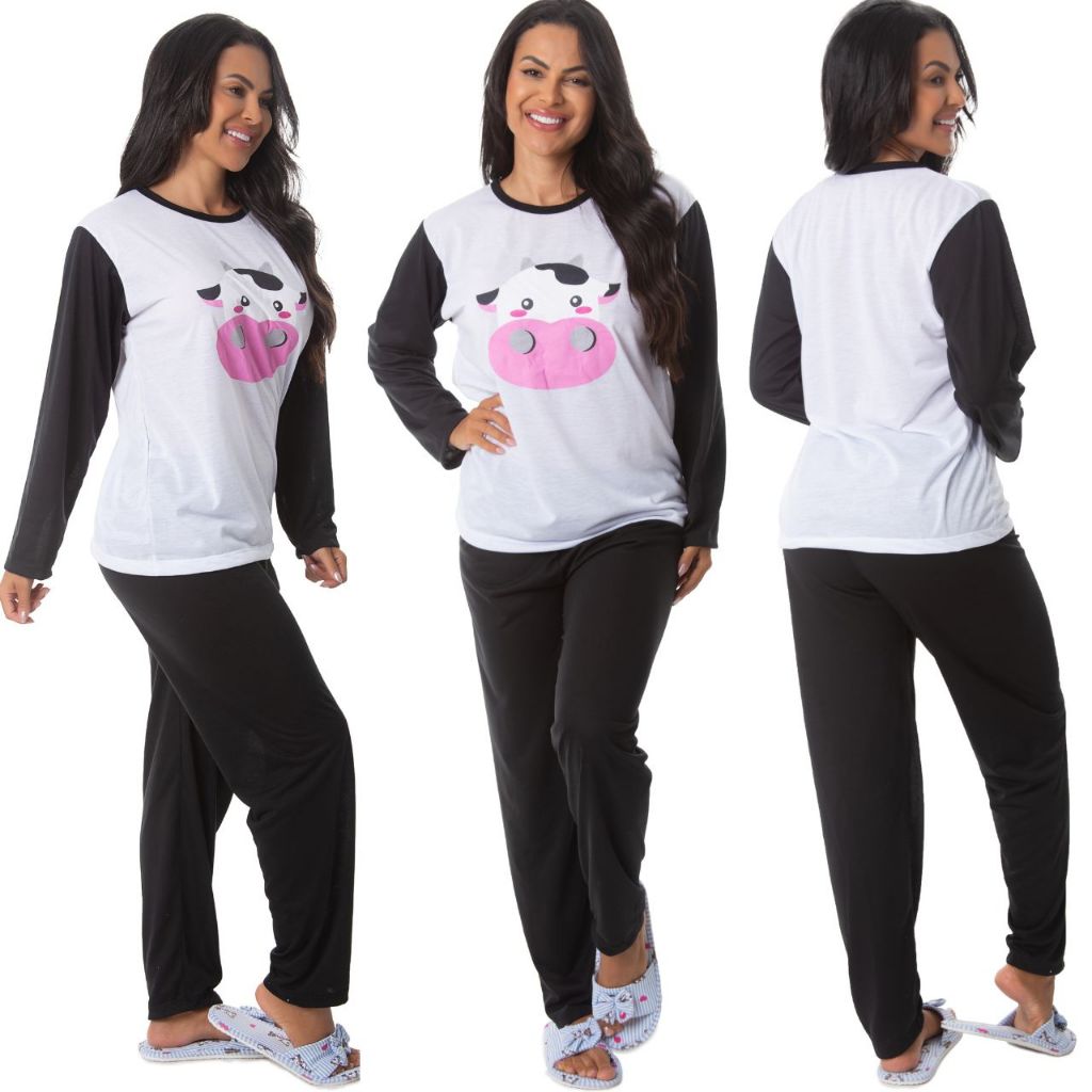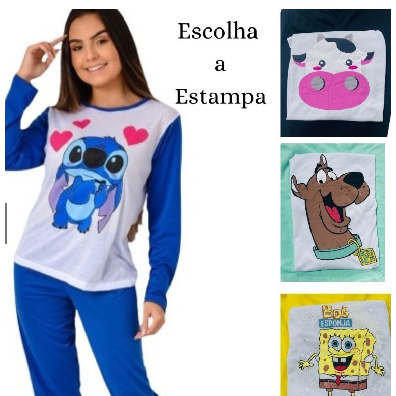 Pijama de Inverno Longo Comprido Feminino Adulto Malha Sueli Escolha Estampa