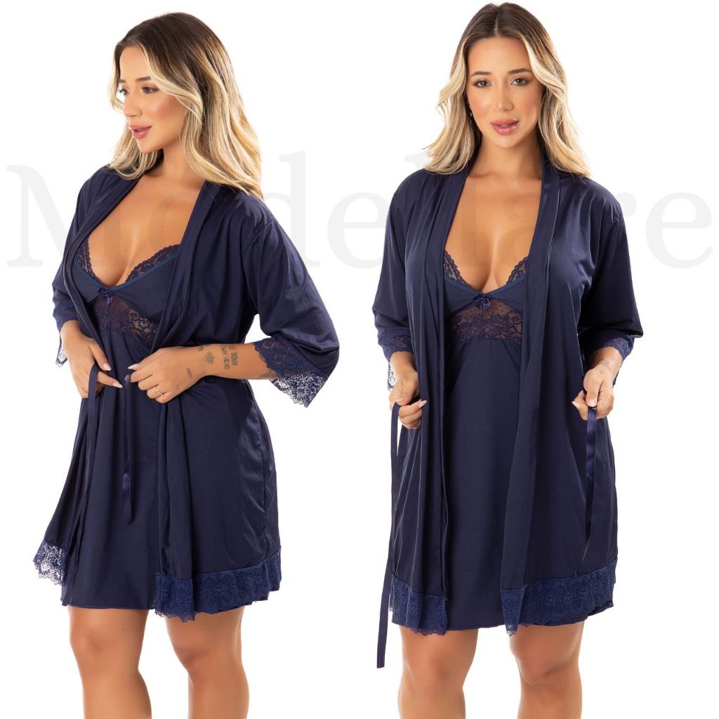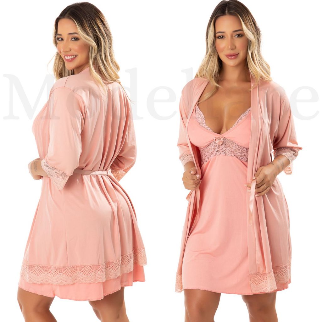 Kit Camisola Amamentação e Robe Conjunto Saída Maternidade Pós Parto Mamãe e Bebê