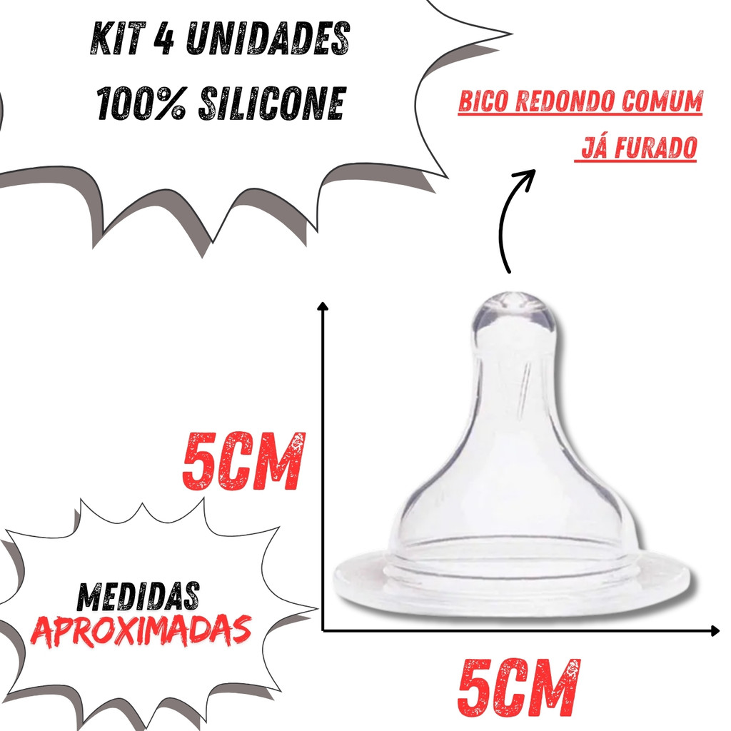 Kit Bico Big Redondo De Mamadeira Silicone 4 Unidades Tetê