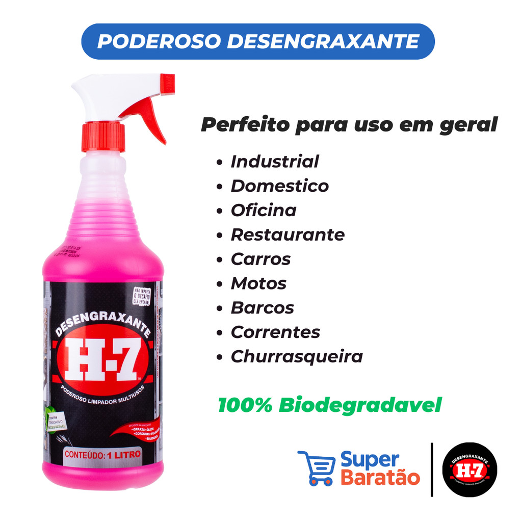 Desengraxante H7 Original Removedor Multiuso H-7 Uso Domestico, Automoveis e Geral