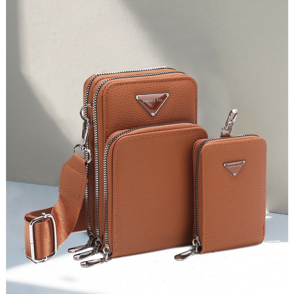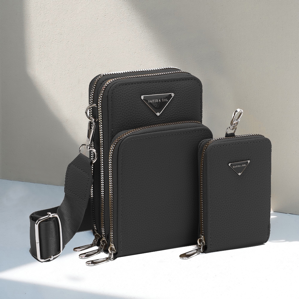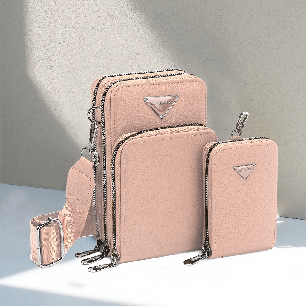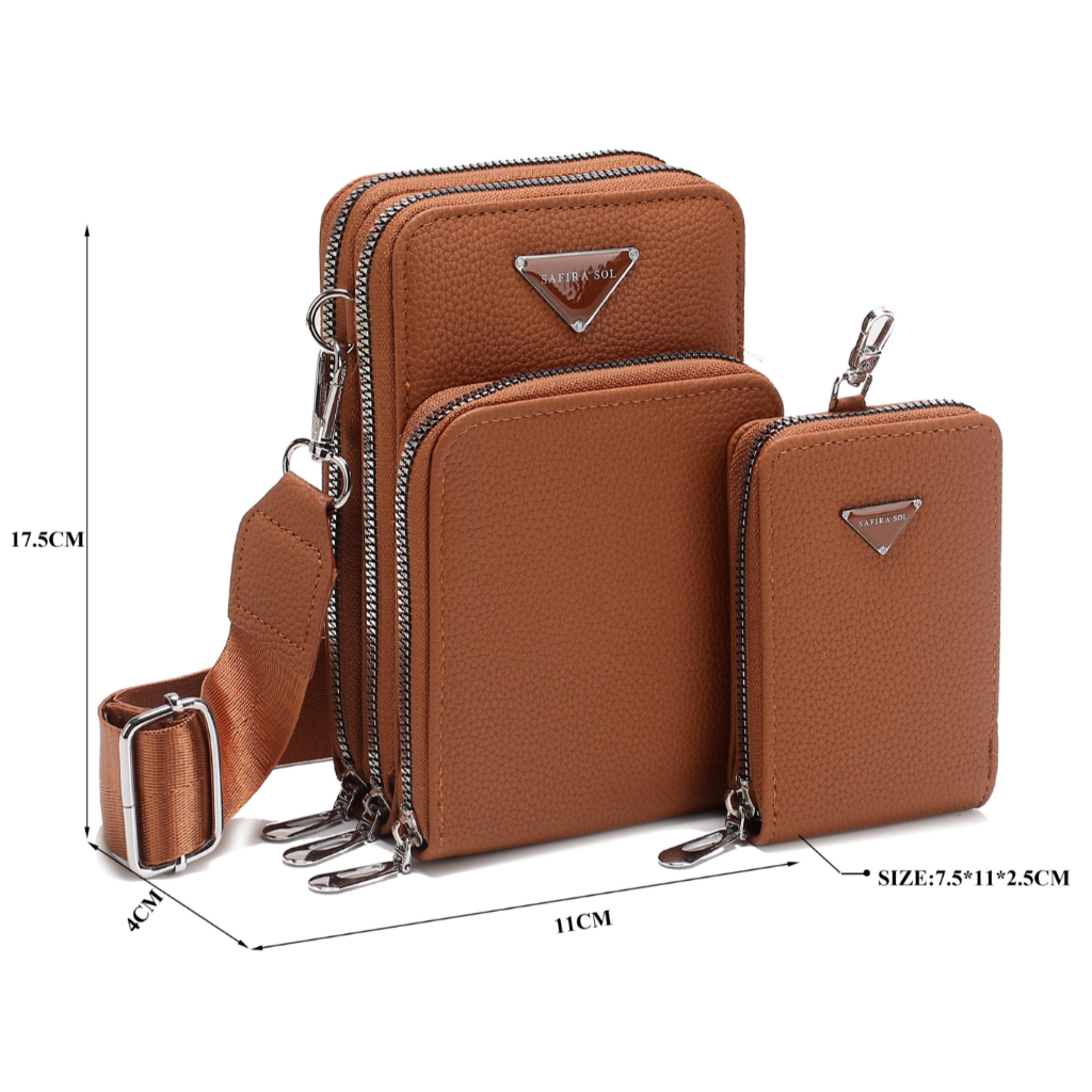 Bolsa Feminina Transversal 3 divisórias Porta Celular com Linda Carteira LT653