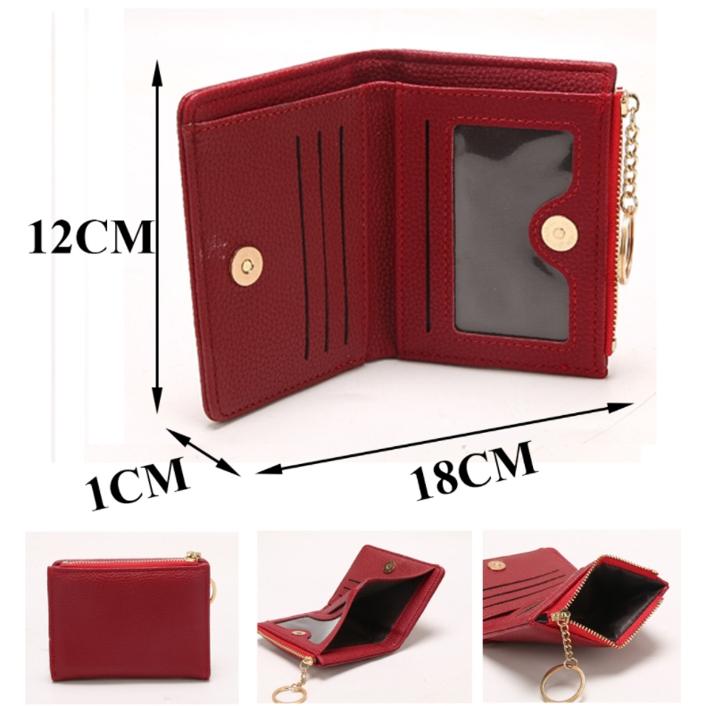 Carteira Curta Cor Sólida Vintage , Porta Moedas Bifold Portátil Cartões De Crédito Feminino ld60