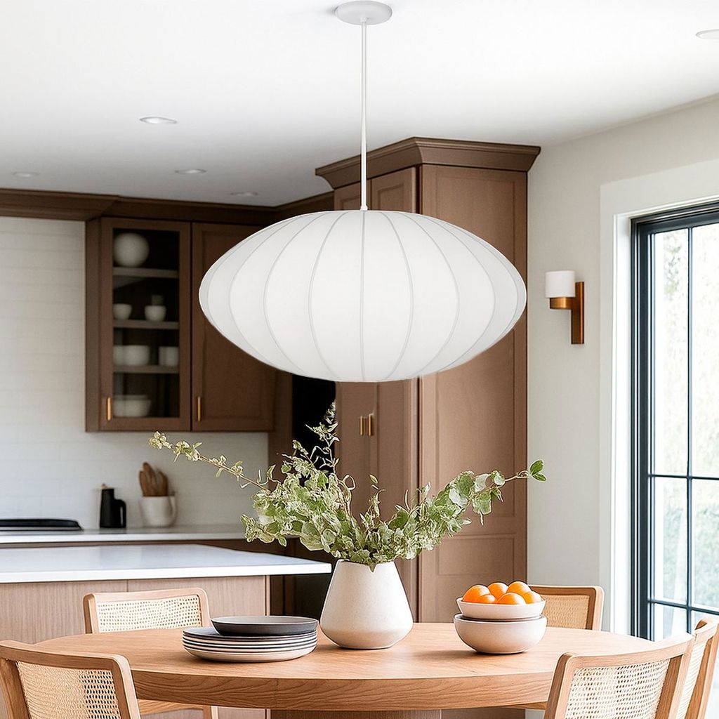 Pendente Em Tecido Redondo Branco Moderno Boho Disco E27 Tec02