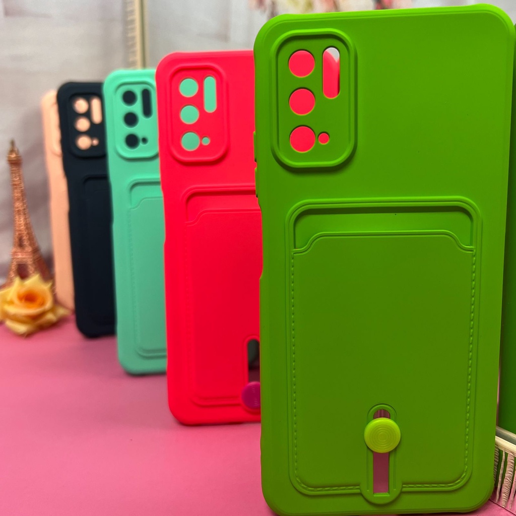 Capa Anti Impacto Colorida/ Redmi Note 10 5G /Poco M3 Pro Porta cartão com Botão para levantar (CF39)