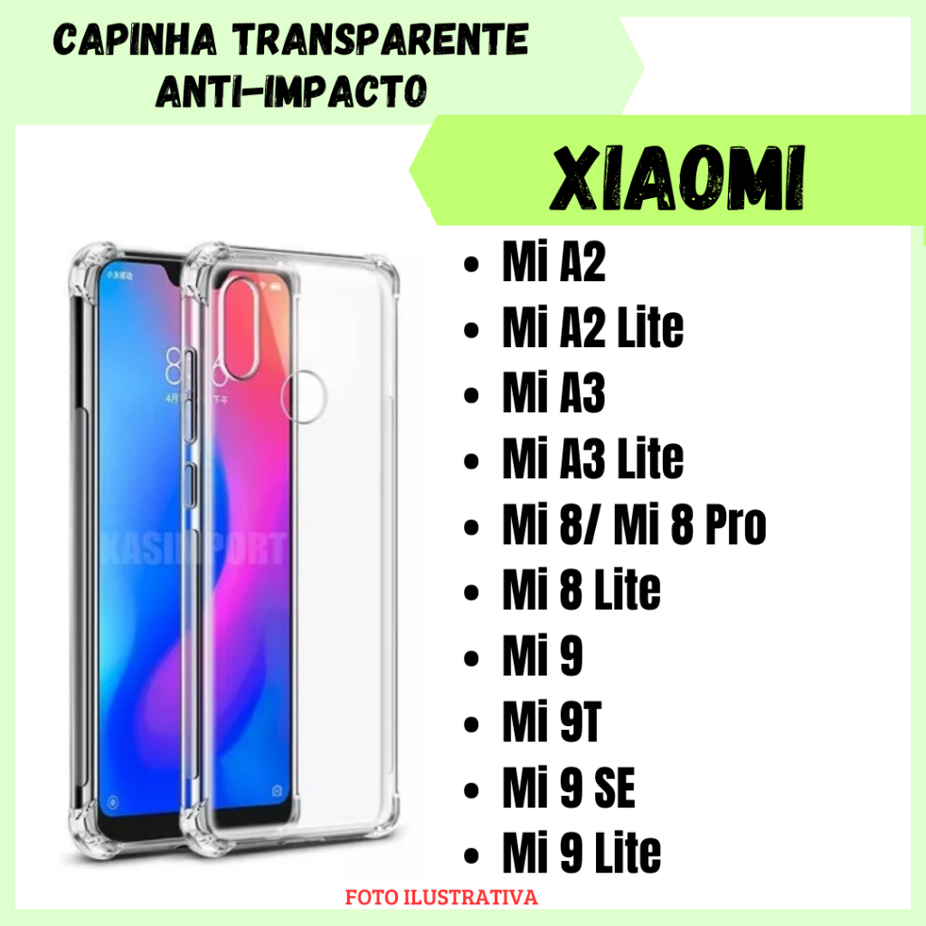 Capa Transparente Anti Impacto Xiaomi Mi A2/A2 Lite/A3/A3 Lite/Mi 8-8 Pro/Mi 8 Lite/Mi 9/Mi 9T/Mi 9 SE/Mi 9 Lite/ (CF09)