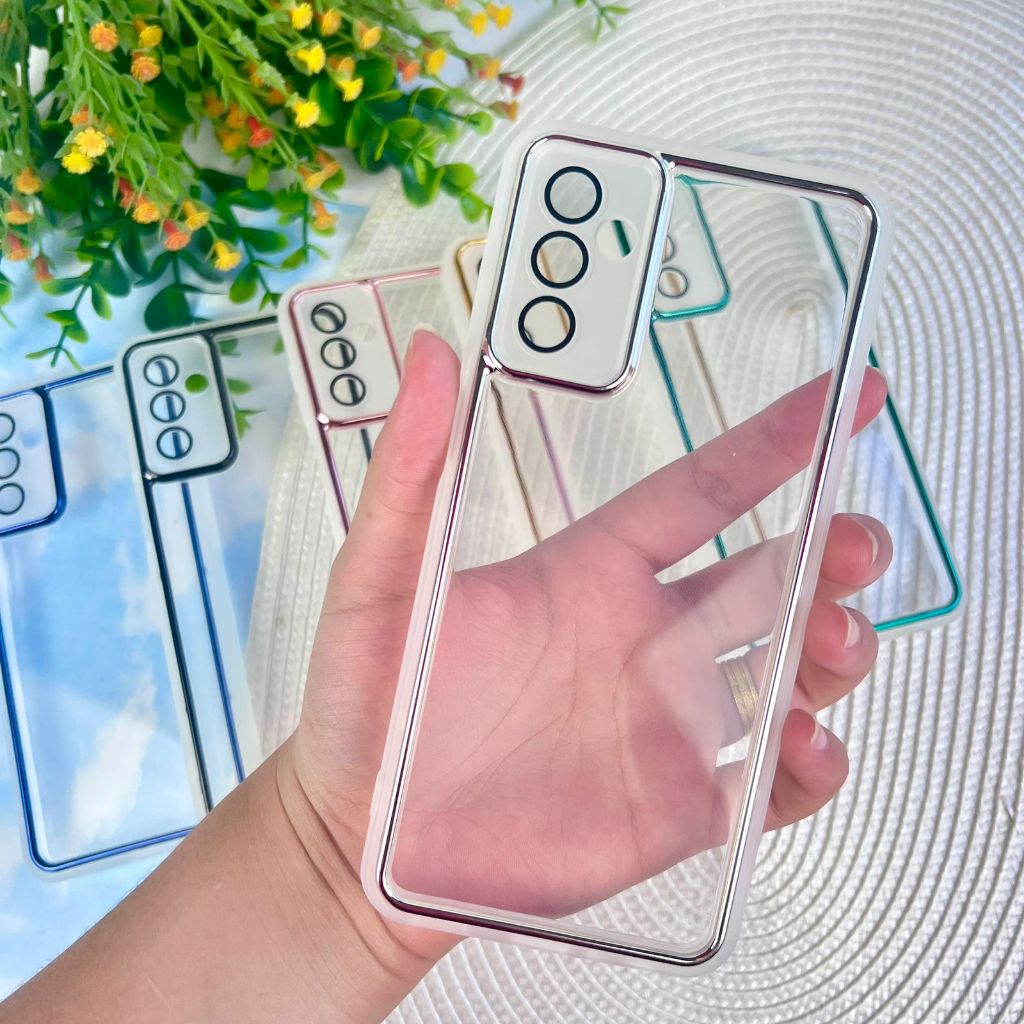 Capa Transparente Com Borda Colorida Metalizada Para Samsung M23 5G / M13 4G / Proteção de Câmera / CF47