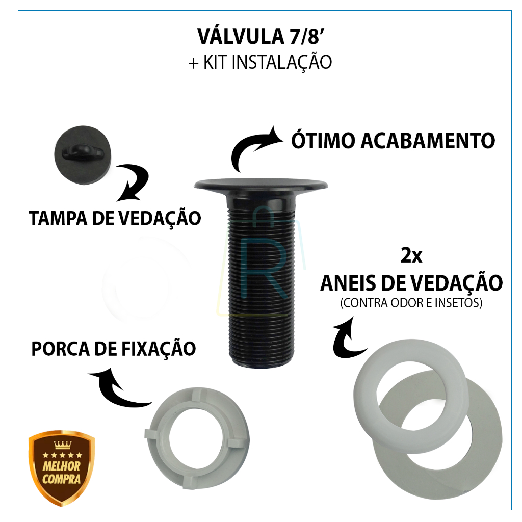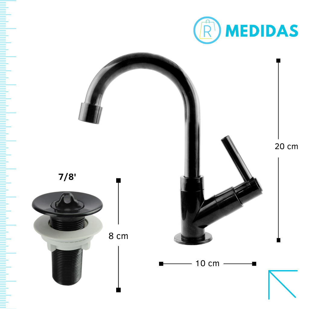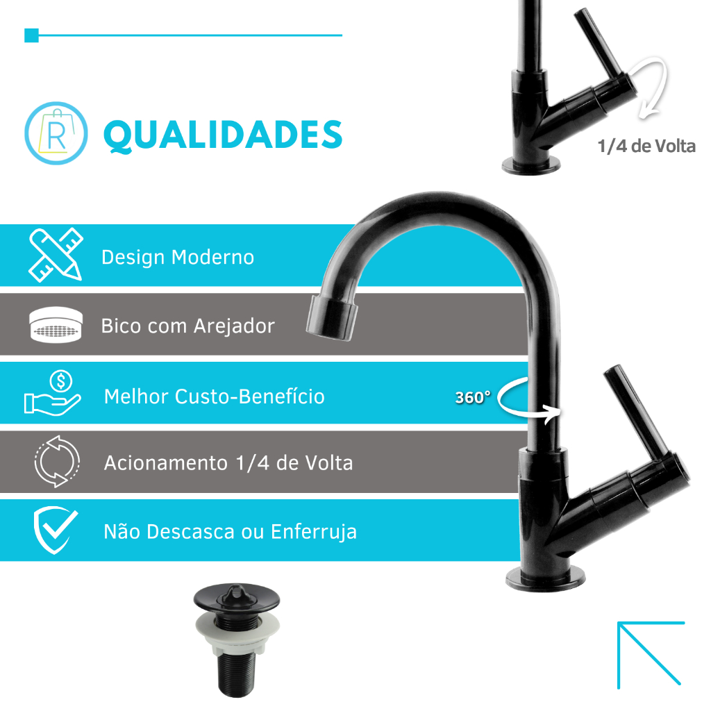 Kit Torneira de Banheiro Lavatório Preta 1198 Abs + Valvula 7/8 Black PRETO Cód. 2123