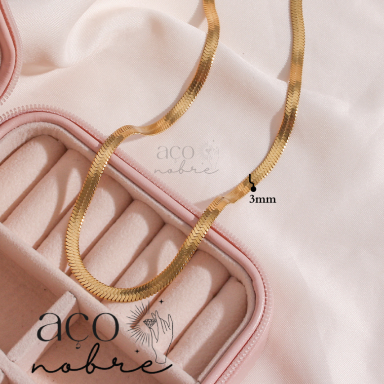 Choker Fita Aço Inoxidável Não Escurece Inox 3mm