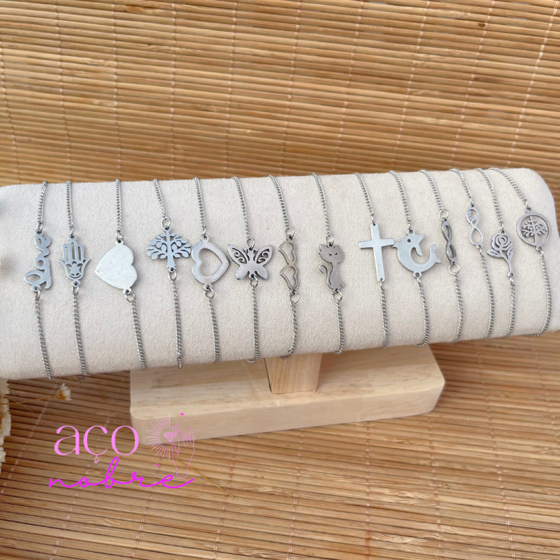 Pulseira Aço Inoxidável Pingentes Variados Hipoalergênicos Gato Coração Love Borboleta Infinito