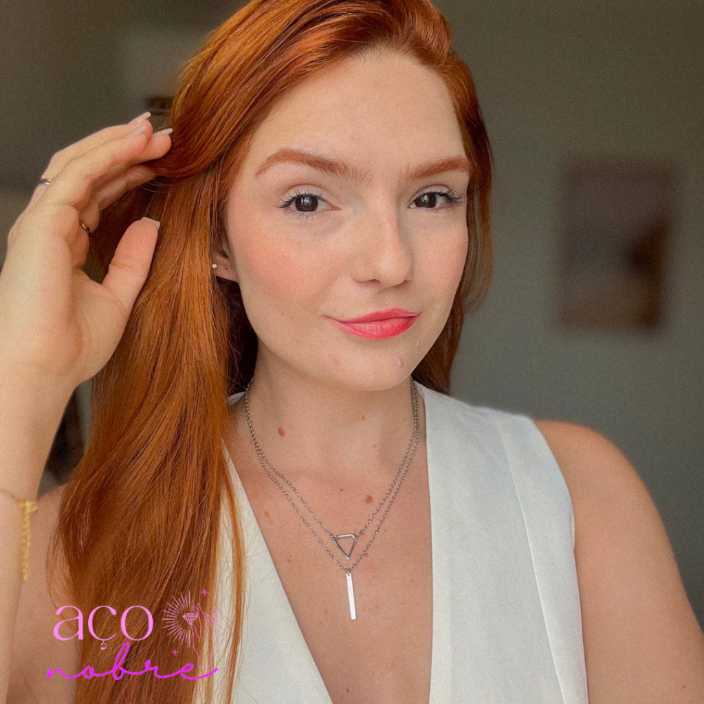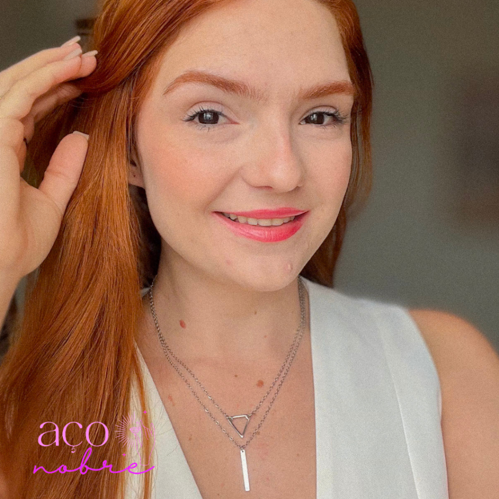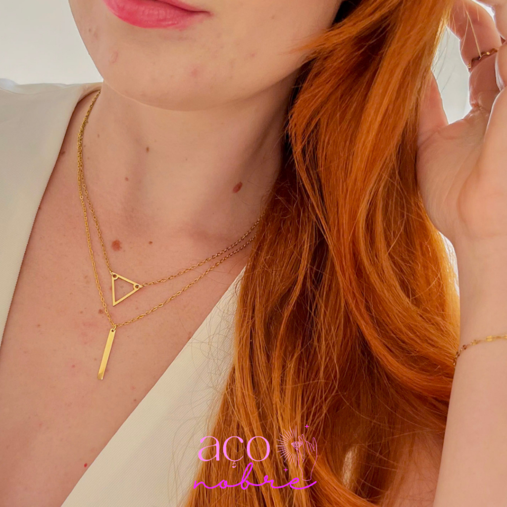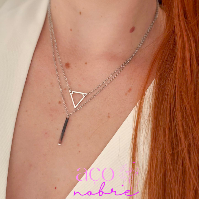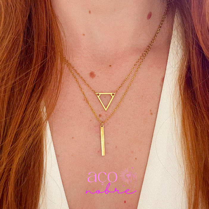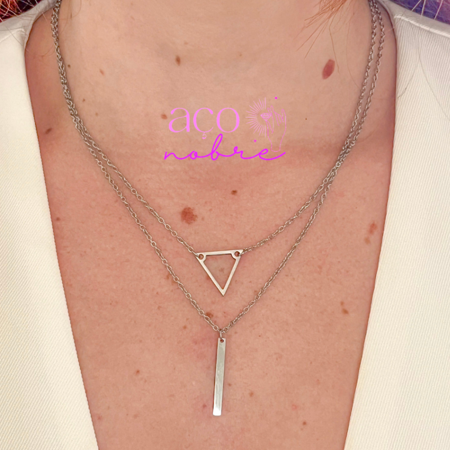 Colar Duplo Triângulo & Palitinho Aço Inoxidável Não Escurece E Não Causa Alergias