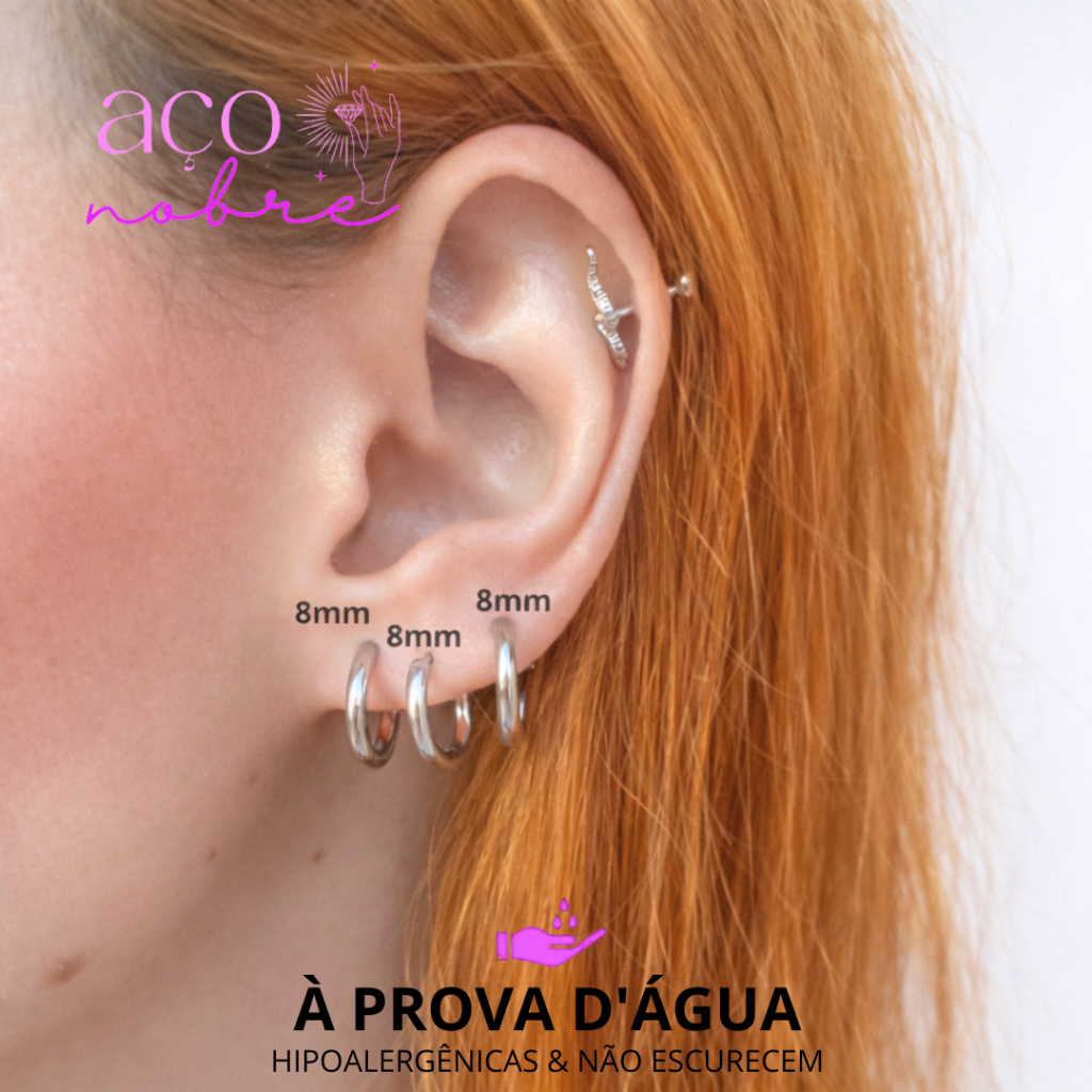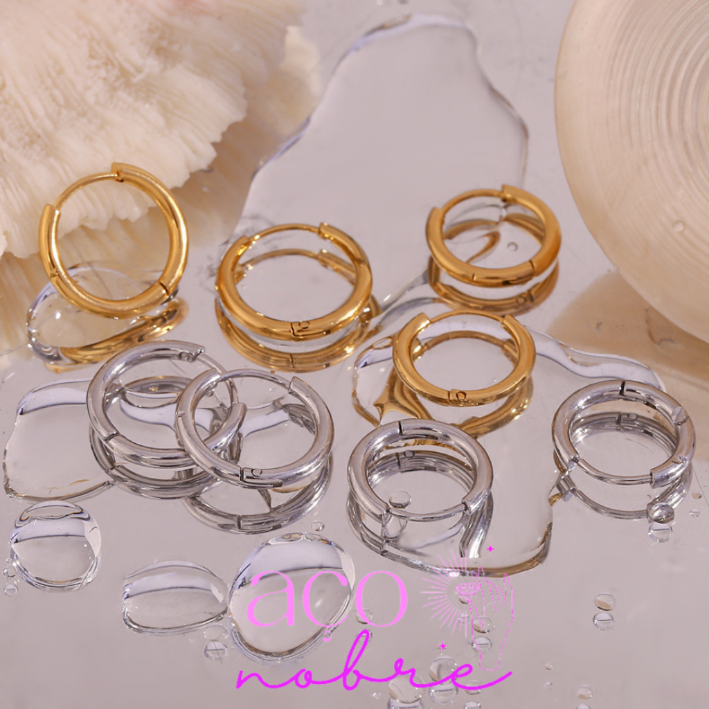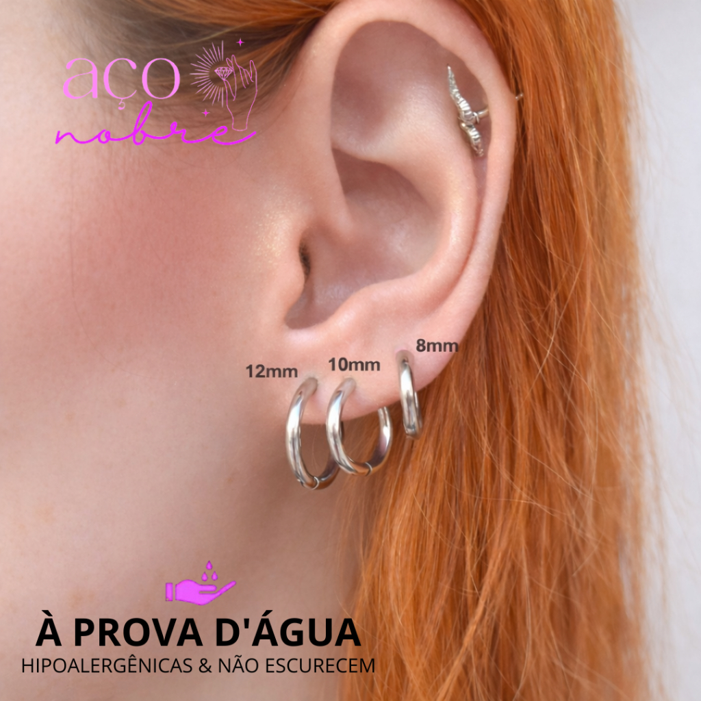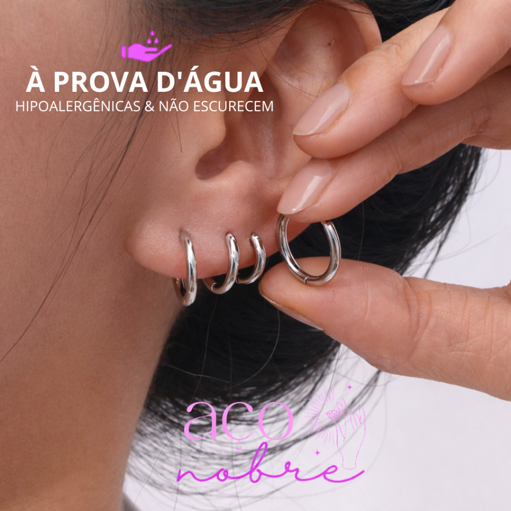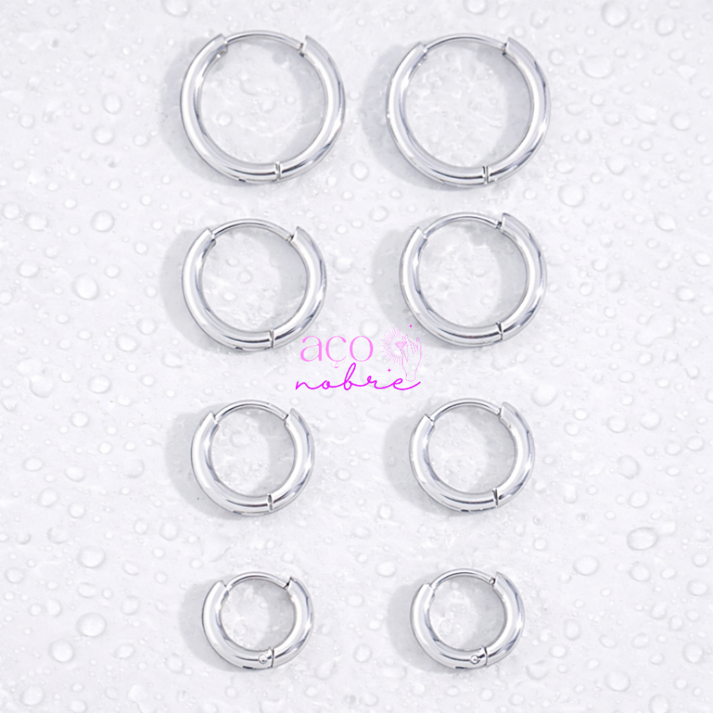 Par de Argola click Para três furos Aço inox não escure e não causa alergia( hipoalergênicas)