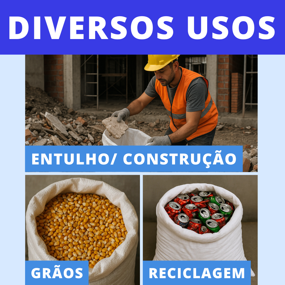 Kit 100 Sacos de Ráfia para Entulho Novos e Grandes 45x60 Capacidade de 35kg Ideal para Contrução