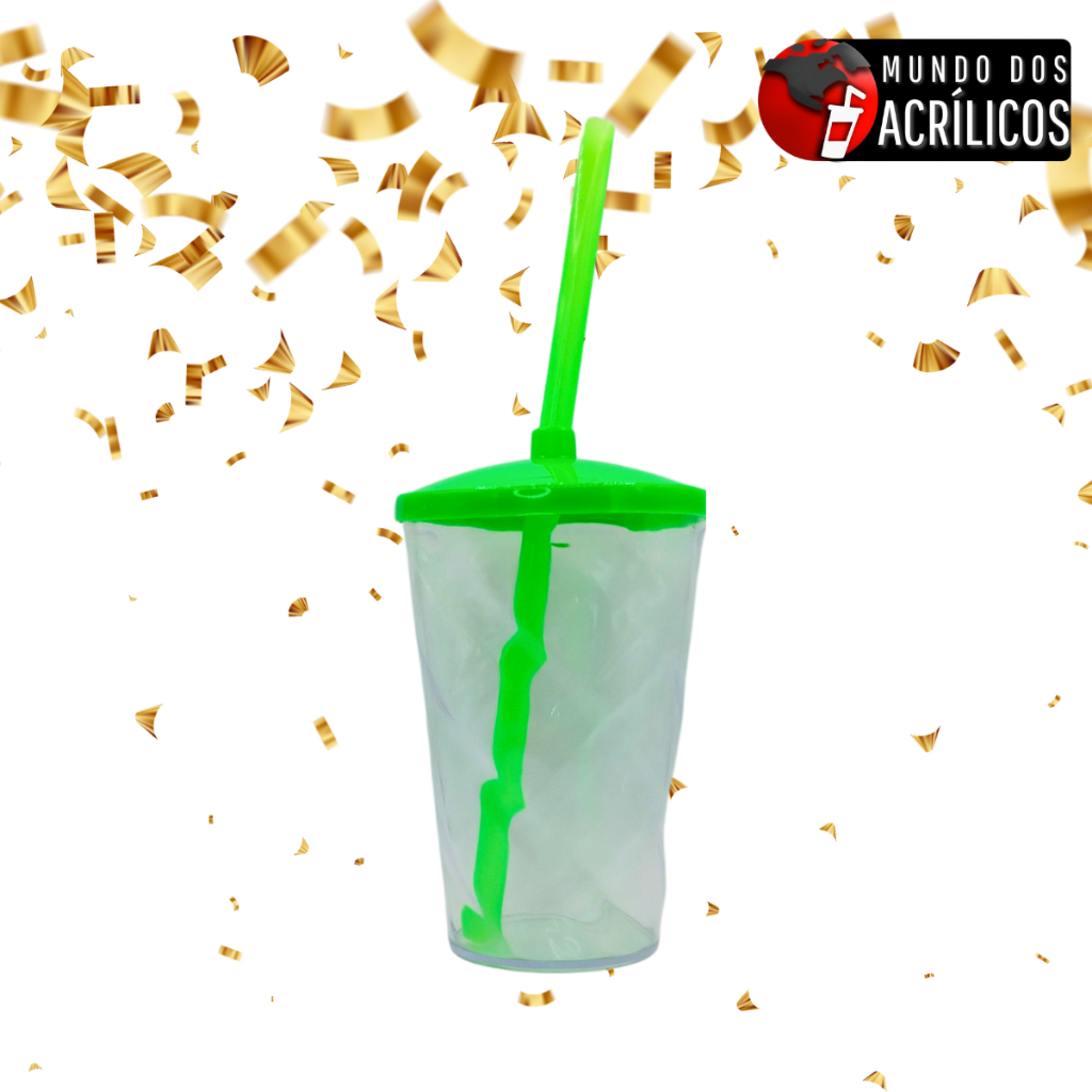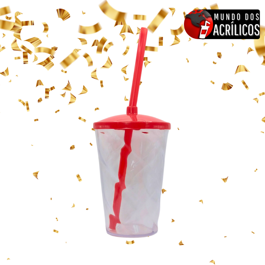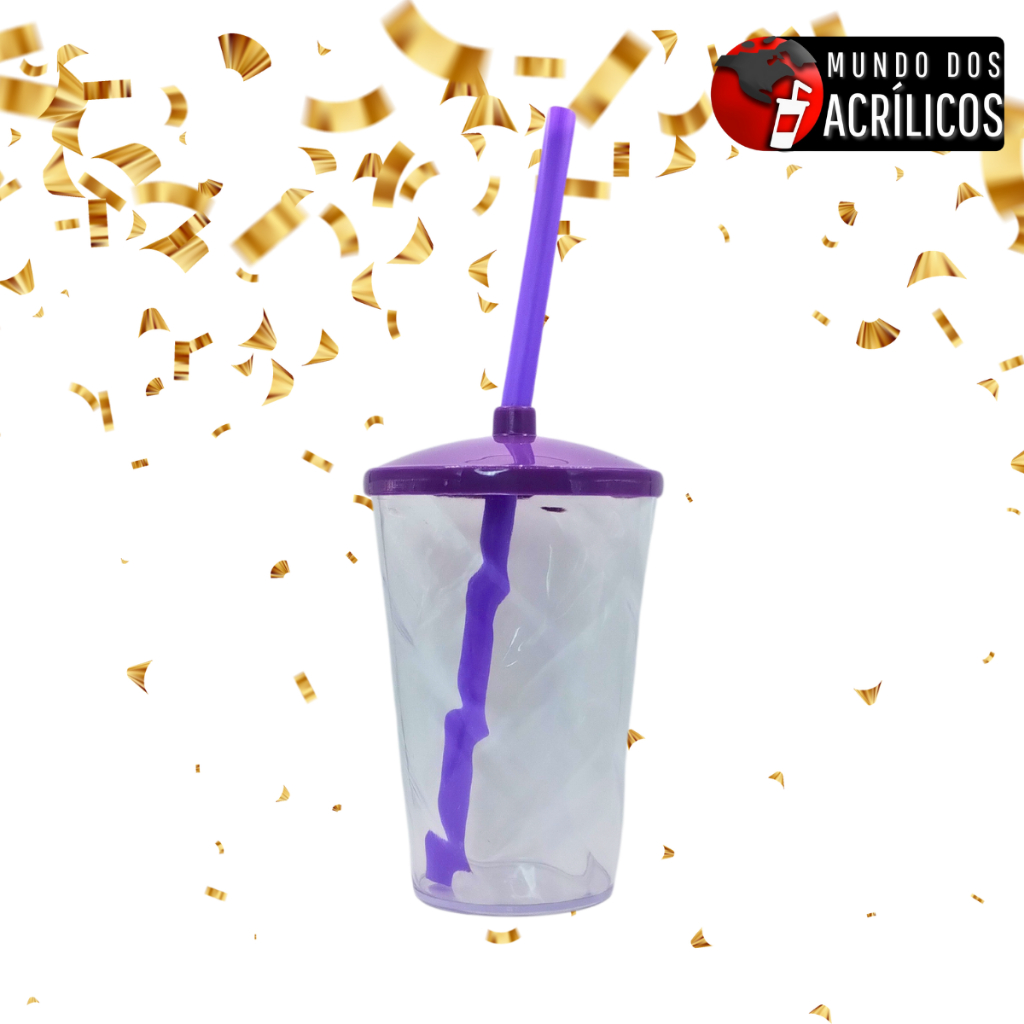KIT 50 COPOS TWISTER 300ML CRISTAL COM TAMPA E CANUDO PARA PERSONALIZAR ADESIVAR FESTA