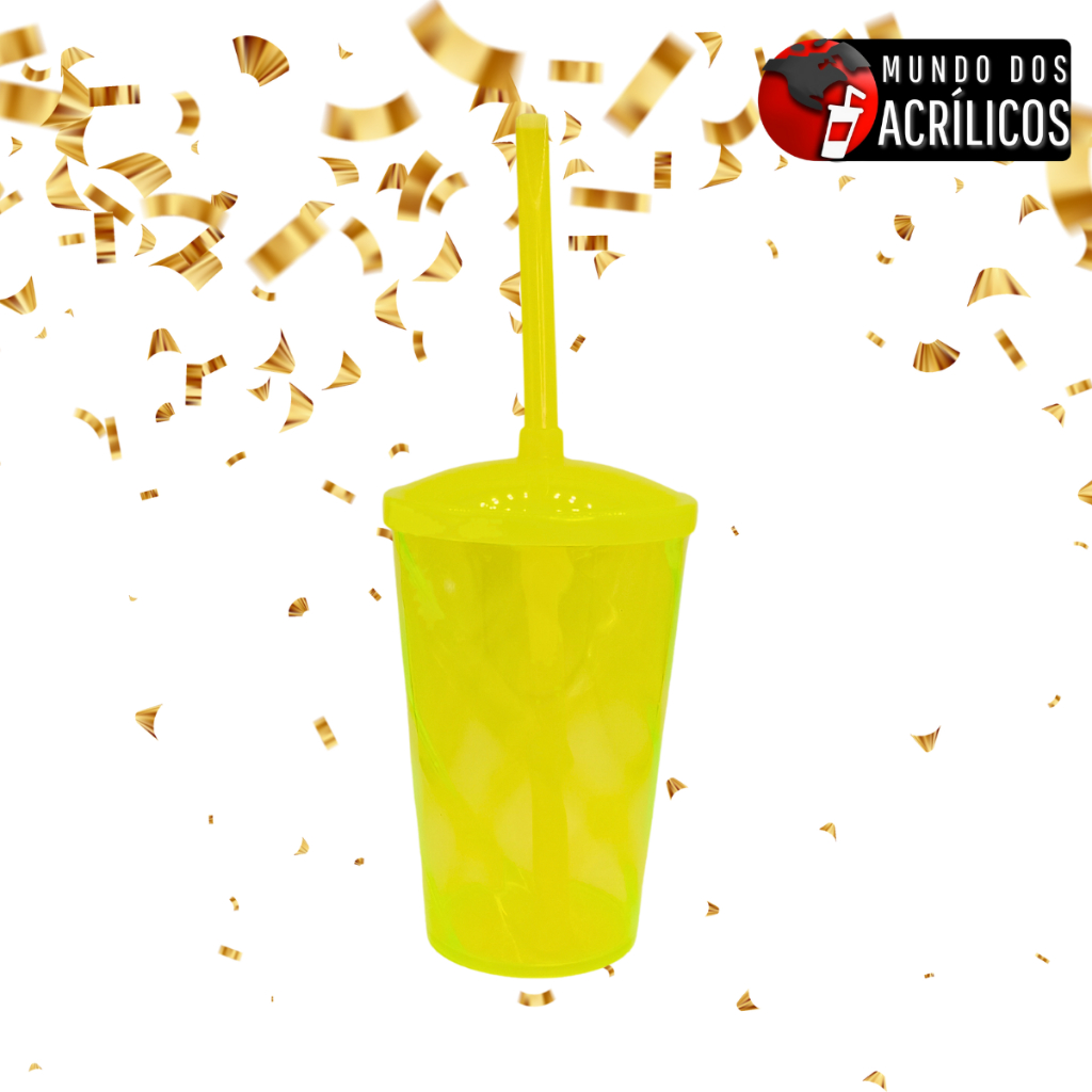 KIT 15 COPOS TWISTER 300ML LISO COM TAMPA E CANUDO PARA PERSONALIZAR ADESIVAR FESTA