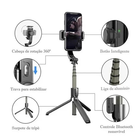 Estabilizador Gimbal Smartphone Selfie Controle Bluetooth Com Tripé L08