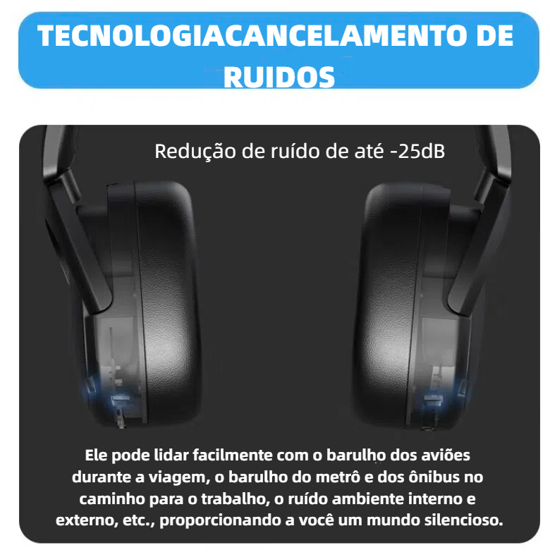 HARBOR Fone de Ouvido Headphone ANC Bluetooth Adaptativo Bluetooth+ Cabo P2 80h+CANCELAMENTO DE RUÍDOS FAM A068N