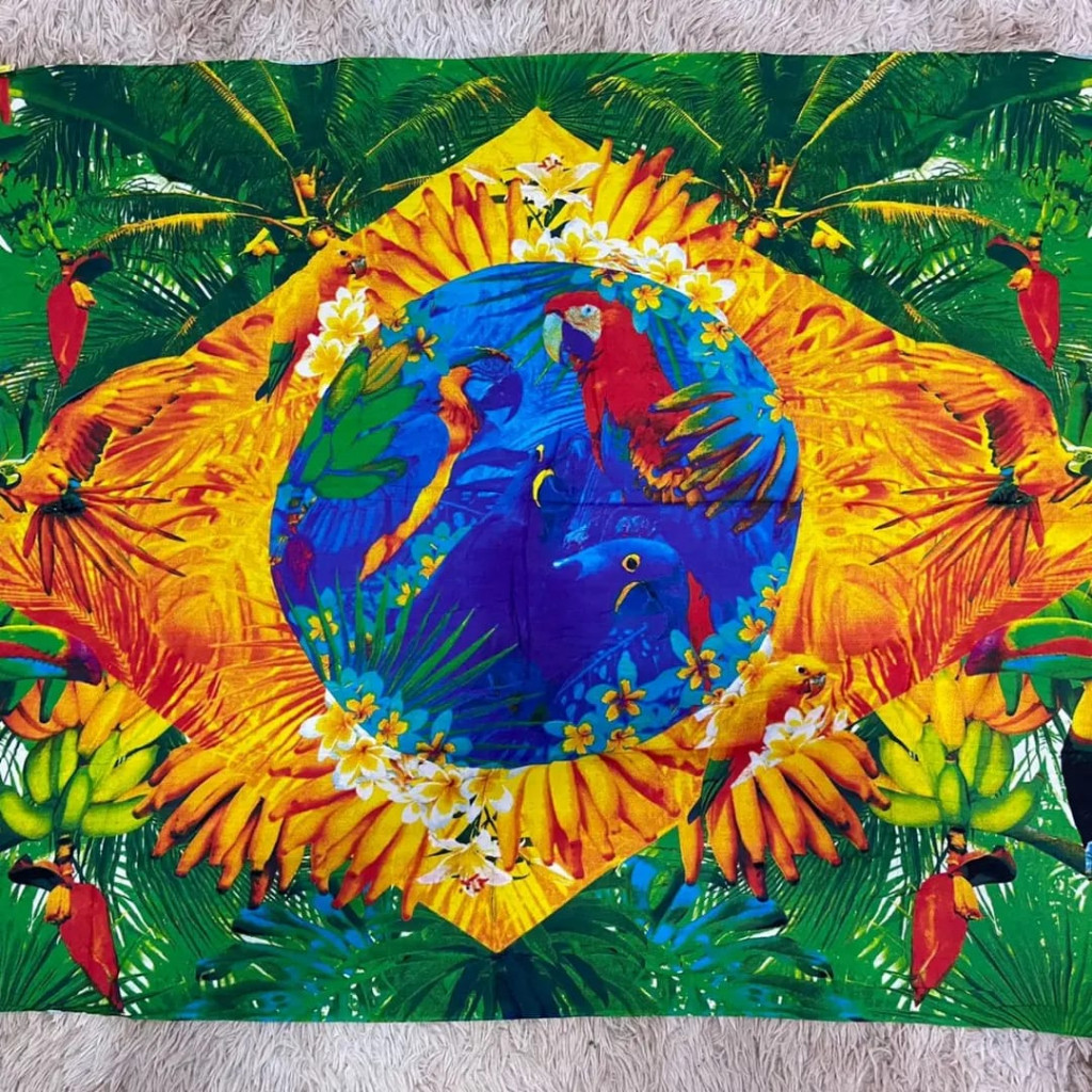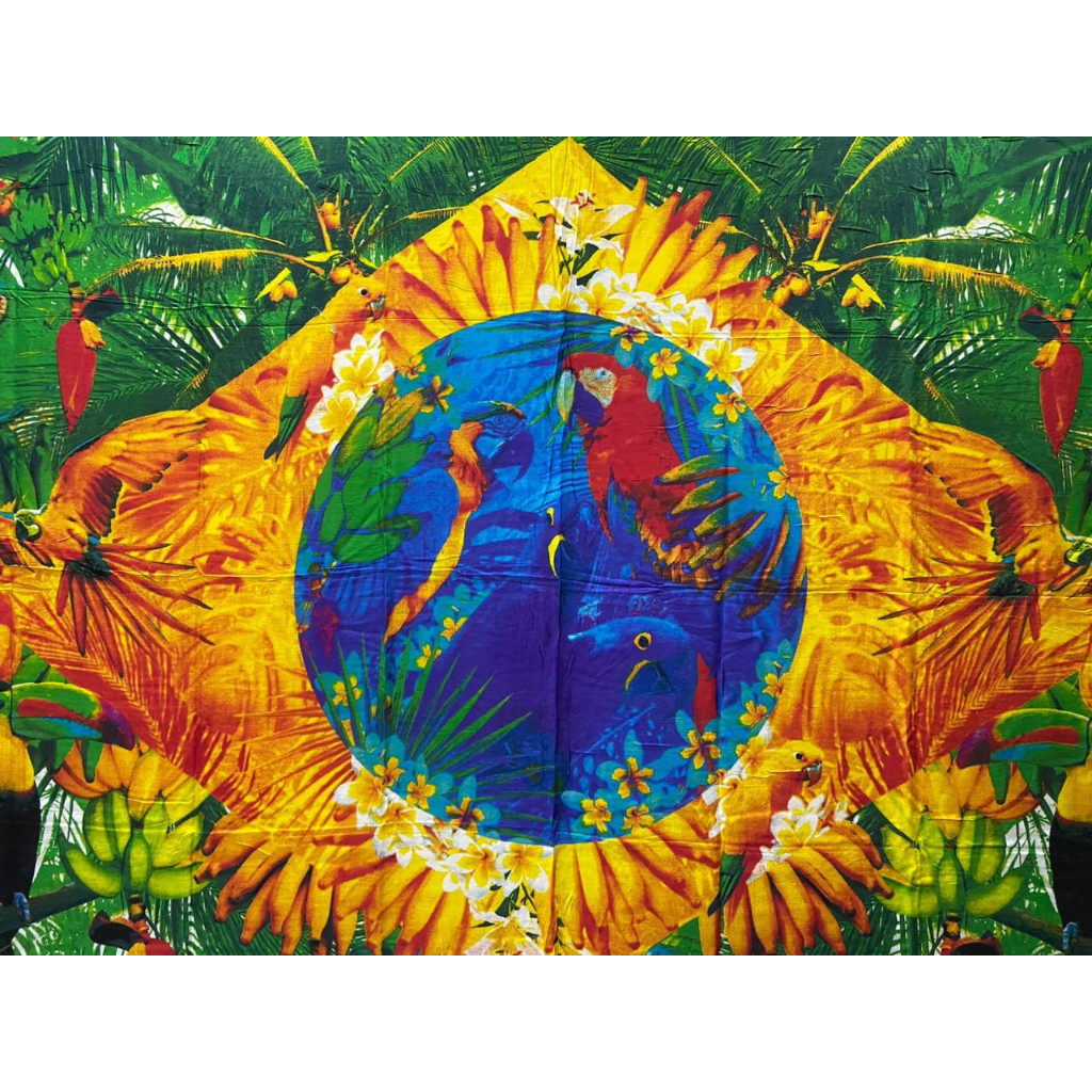 Canga De Praia Enorme Viscose Bandeira Do Brasil Fauna Brasileira Ordem E Progresso tucanos
