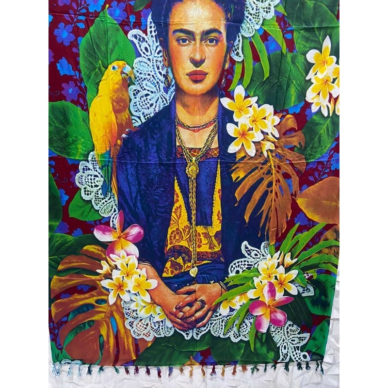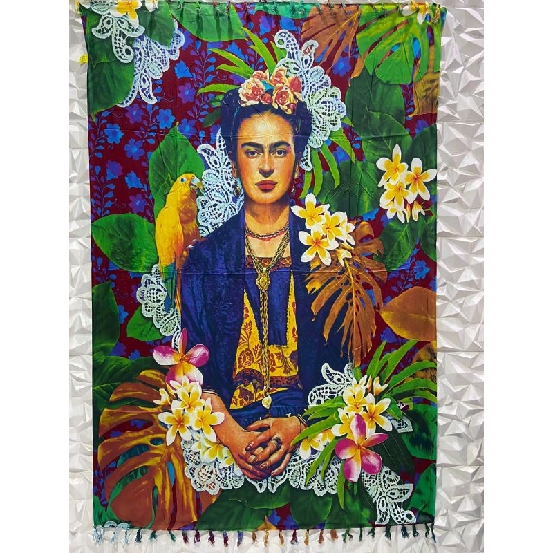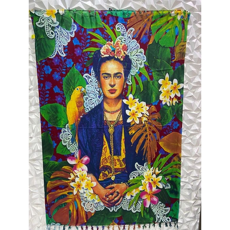 Canga De Praia Tecido Viscose Pintora Frida Kahlo Moda Verão 2024