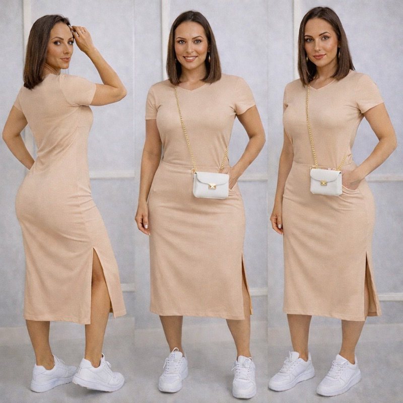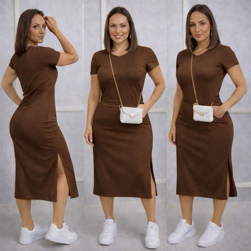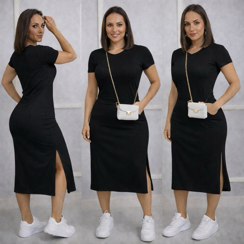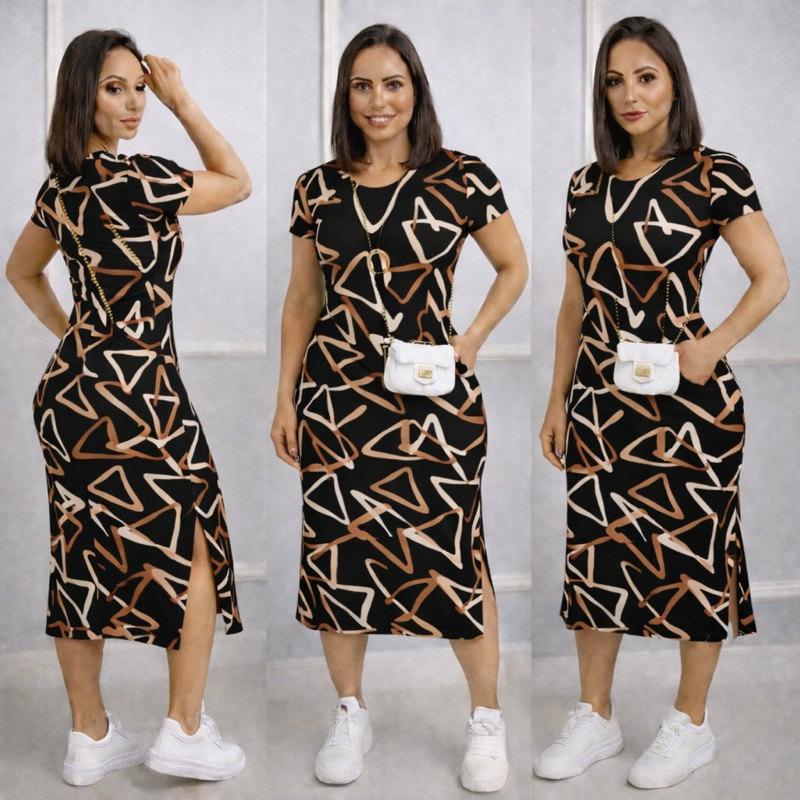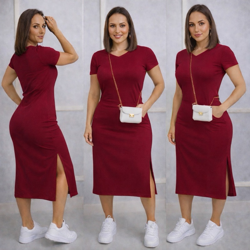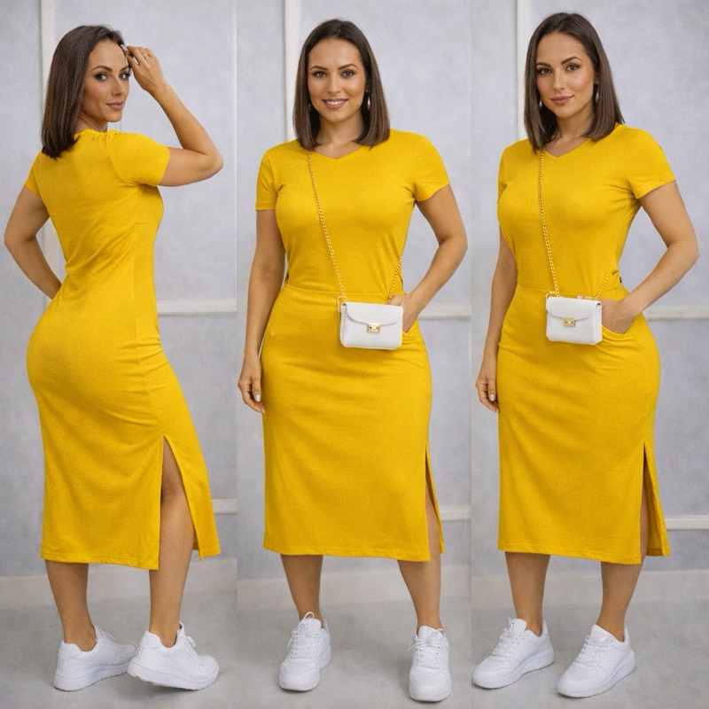 Vestido casual mais vendidos fenda lateral MIDI de bolso moda feminina verão festa tubinho