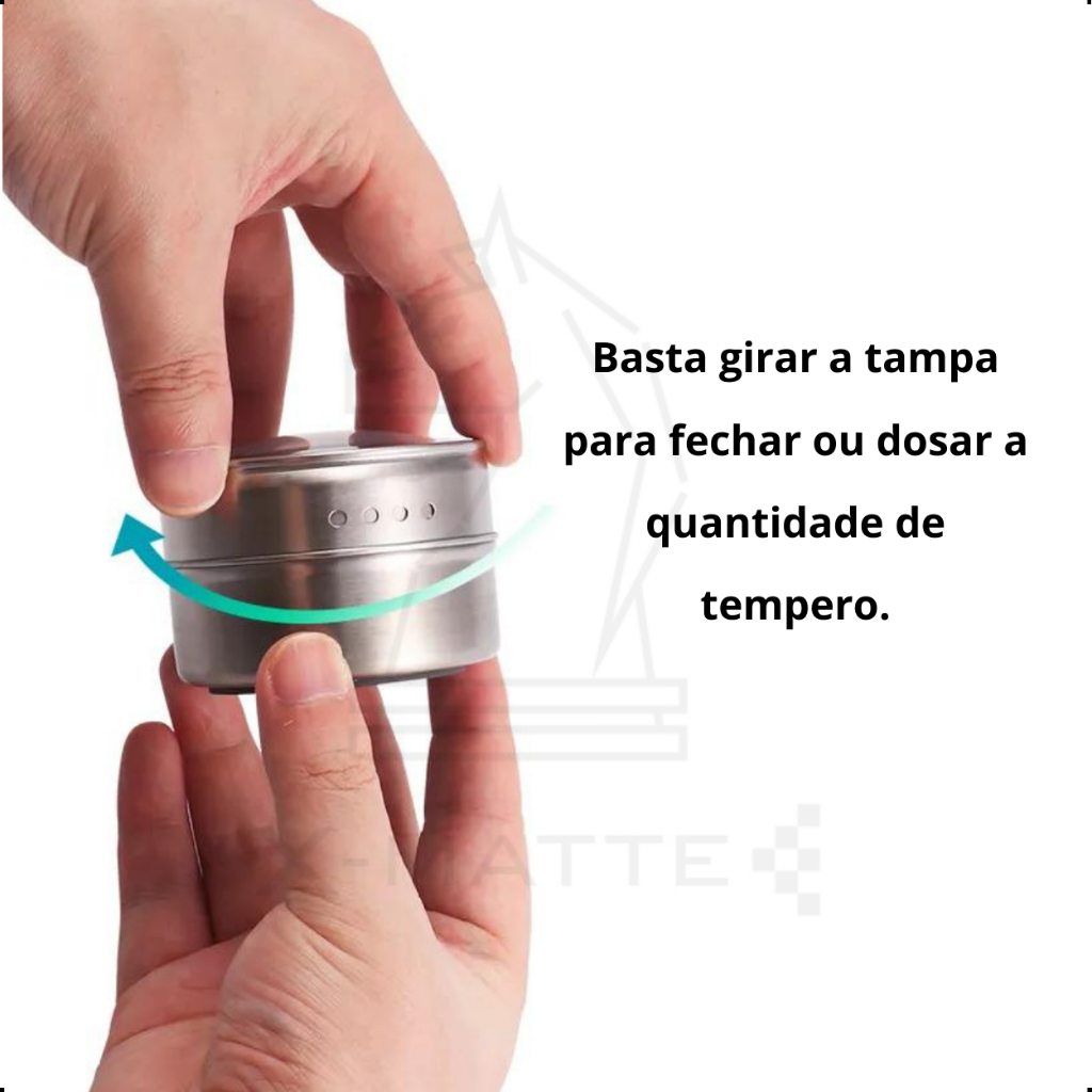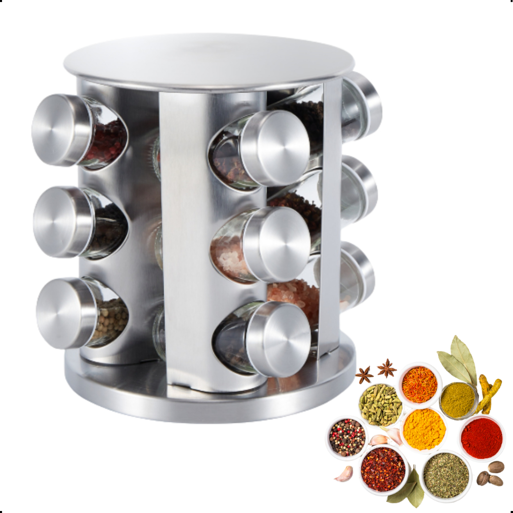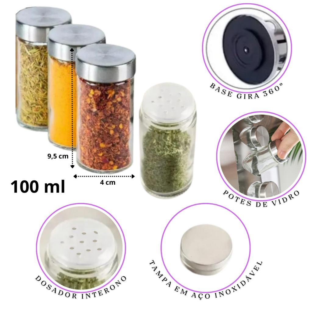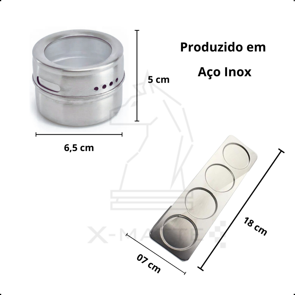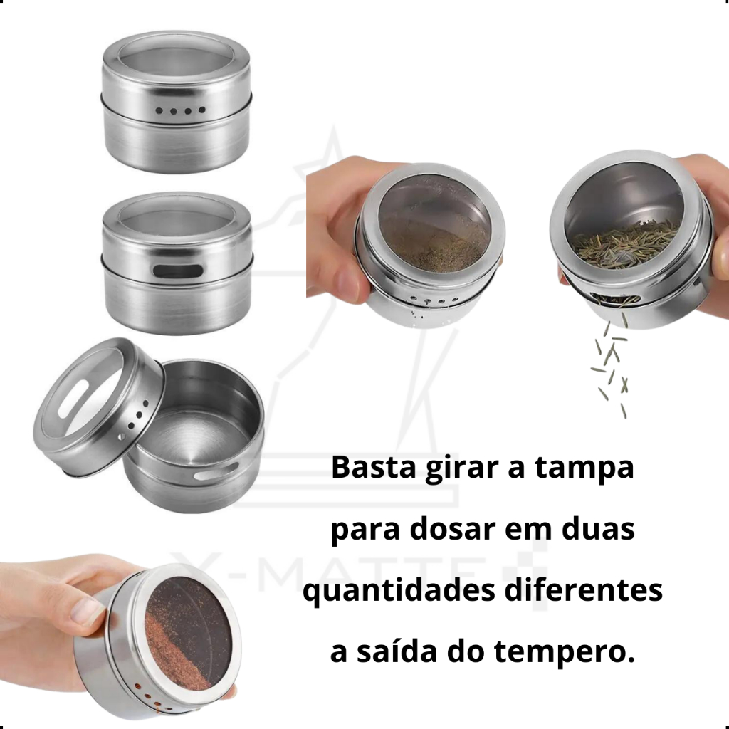 Porta Tempero 12 Peças Giratório 360° em Vidro e Inox ou 4 Potes Magnético Imã De Geladeira X-MATTE