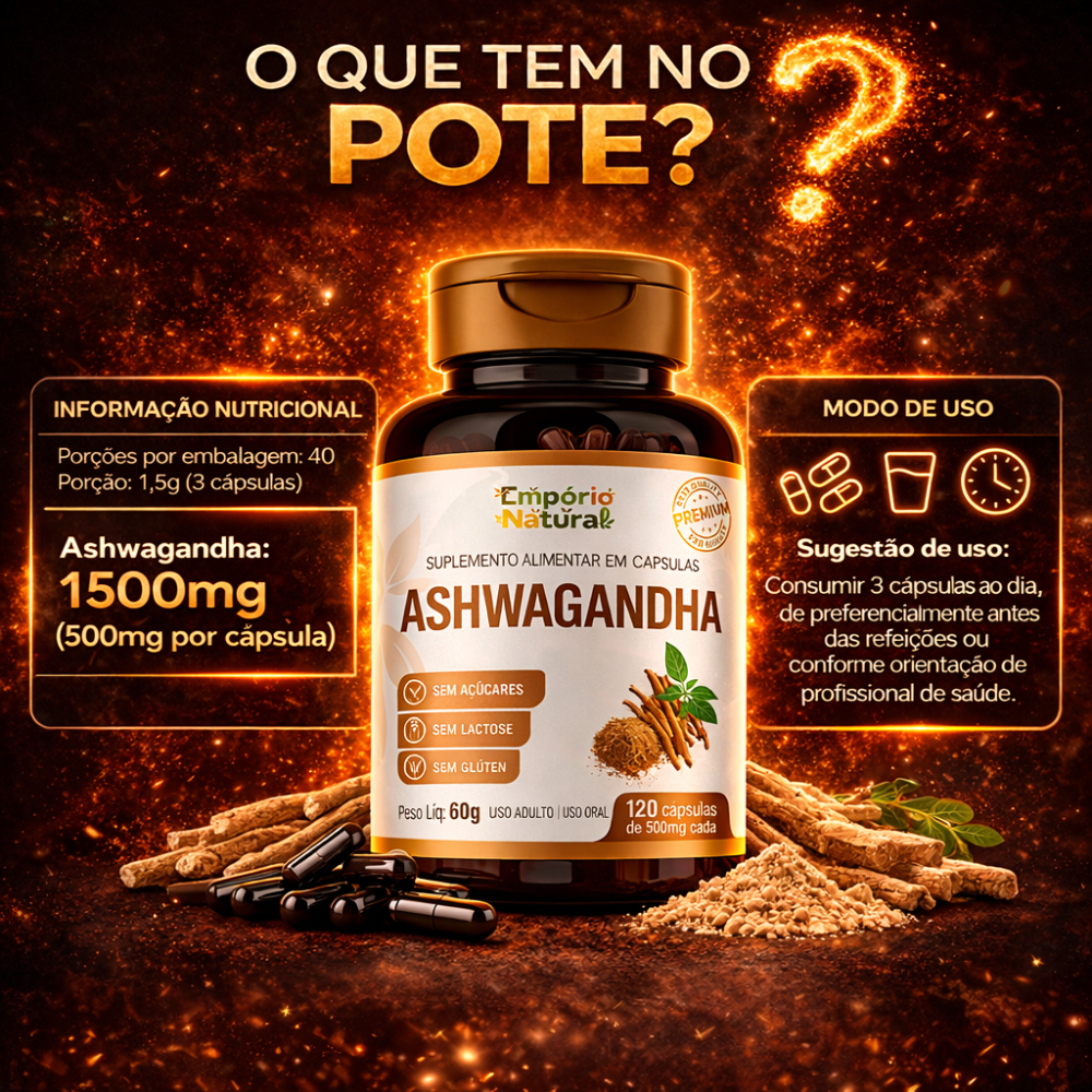 Ashwagandha 100% Puro - 120 capsulas 1500mg - Suporte ao Estresse e Vitalidade Envio imediato