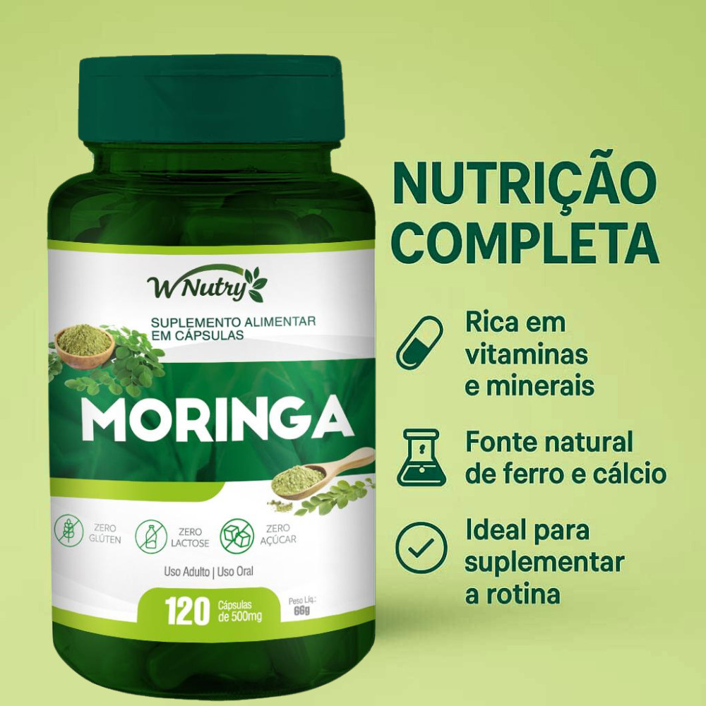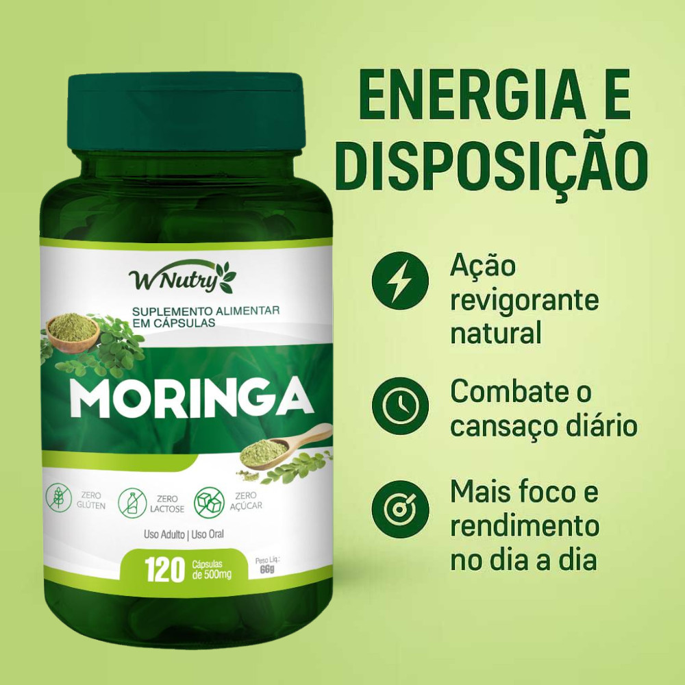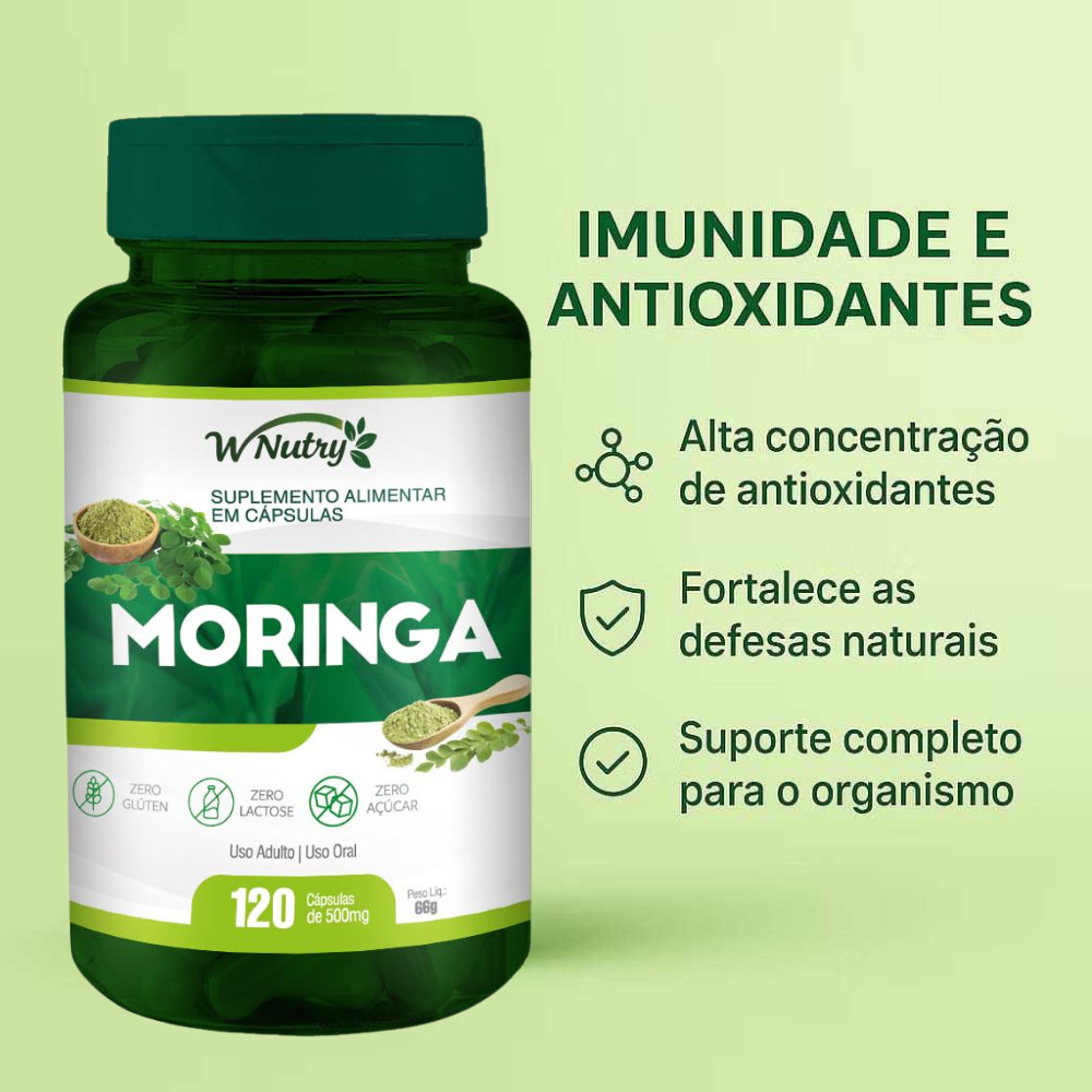1 Potes de Moringa Oleifera 120 Cápsulas 500mg - Antioxidante Natural