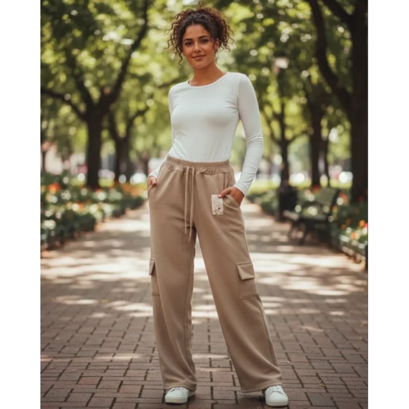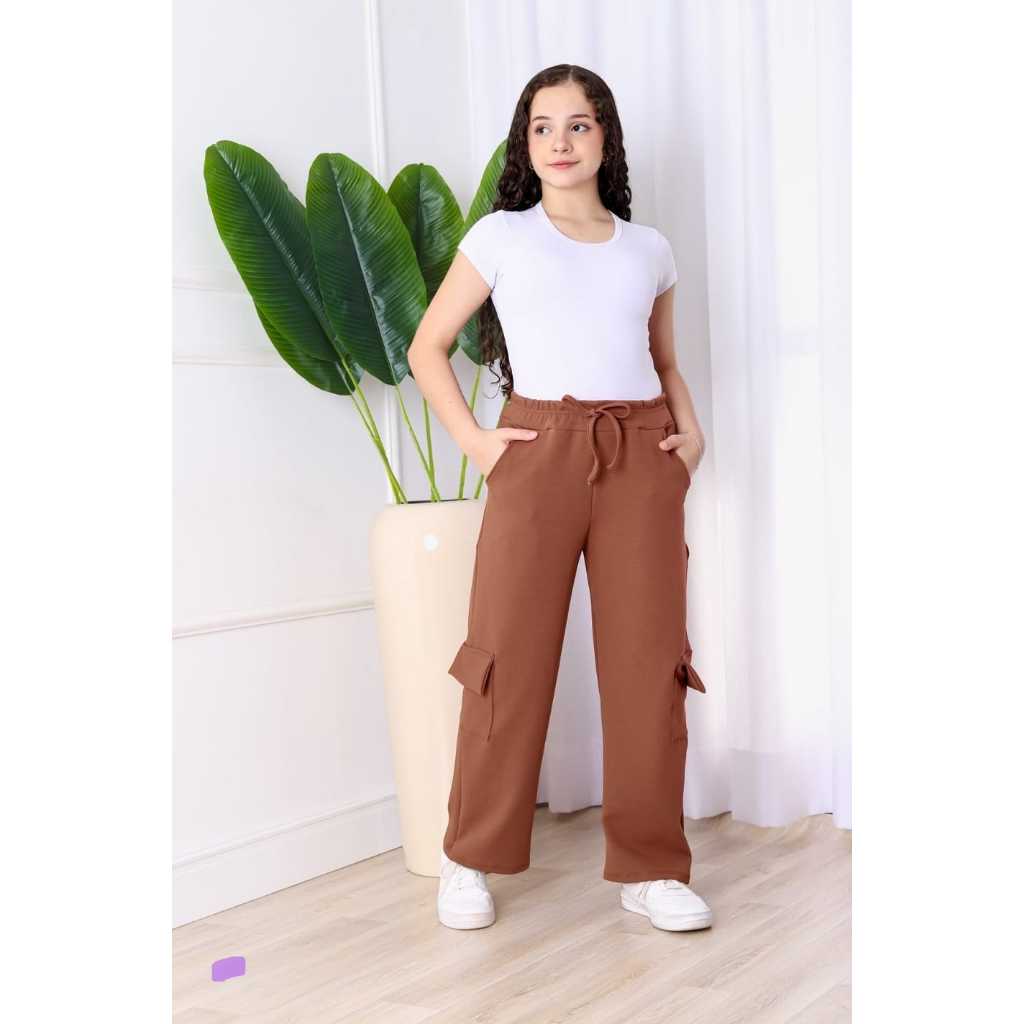 calça cargo juvenil tecido malha crepe calça feminina infantil calça wide leg juvenil cargo calça flare menina