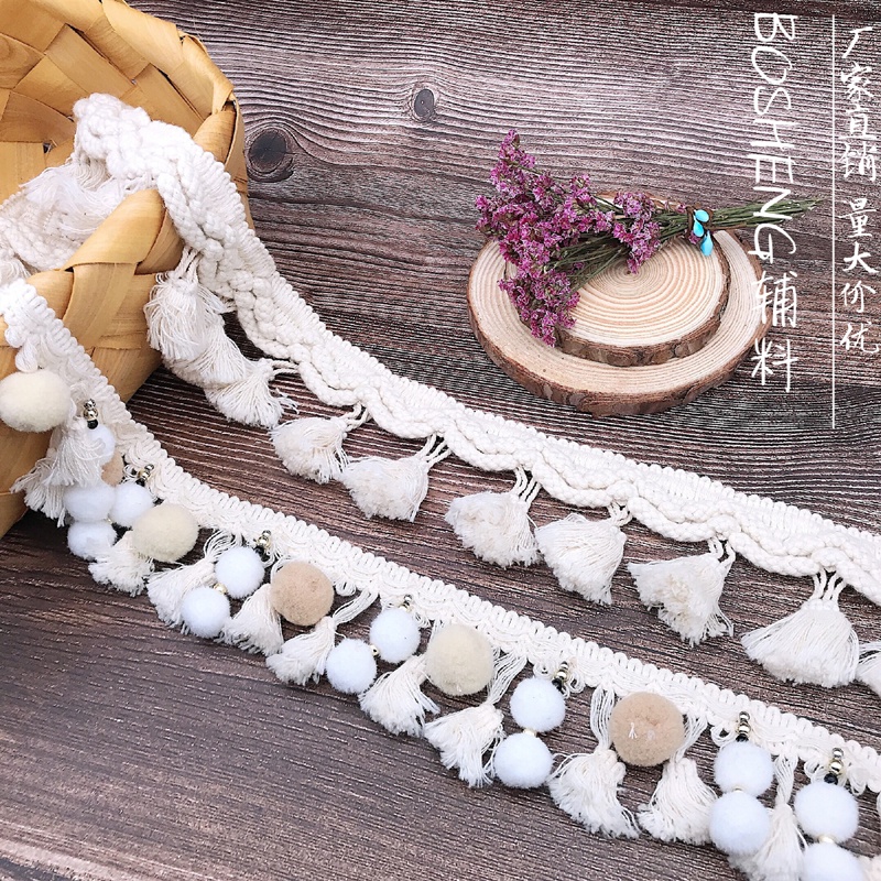 1Y Pom Trim Ball Wide 6CM Sewing Beige White Lace Fabric Beaded Acessórios Artesanais