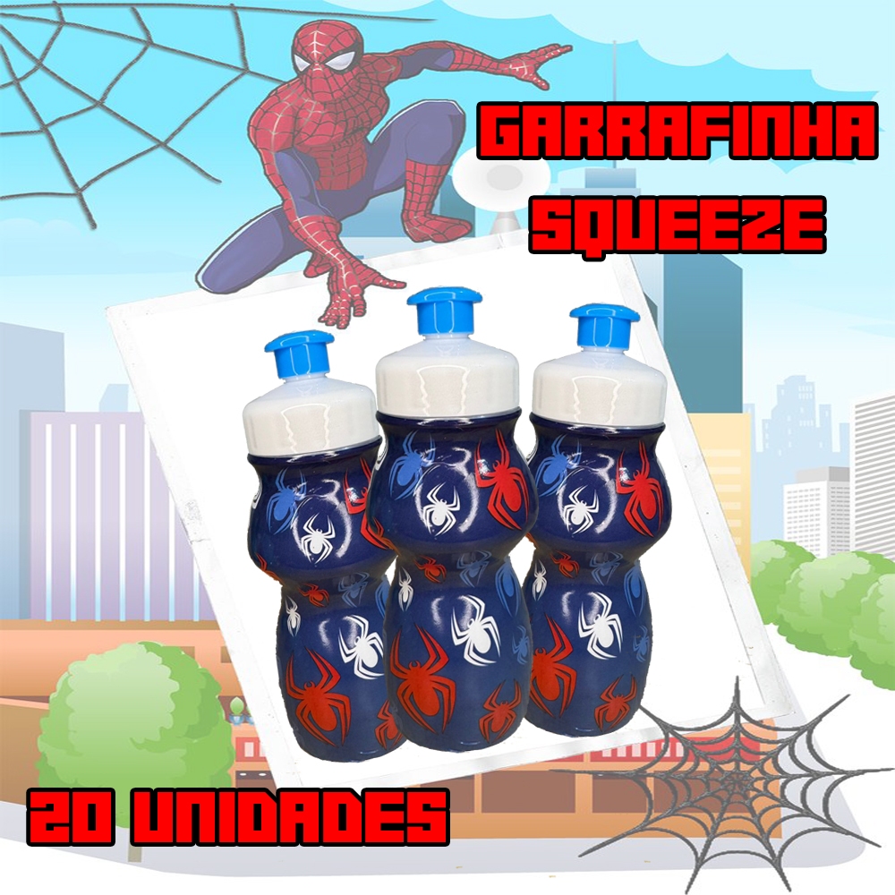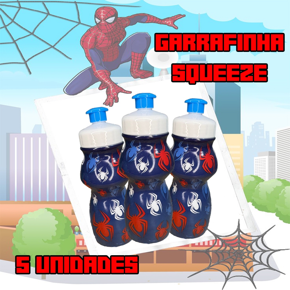 Kit de 5 a 30 Garrafinhas Squeeze estampa Spider Aranha – Brindes Lembrancinhas Festa Escolar 🕷️