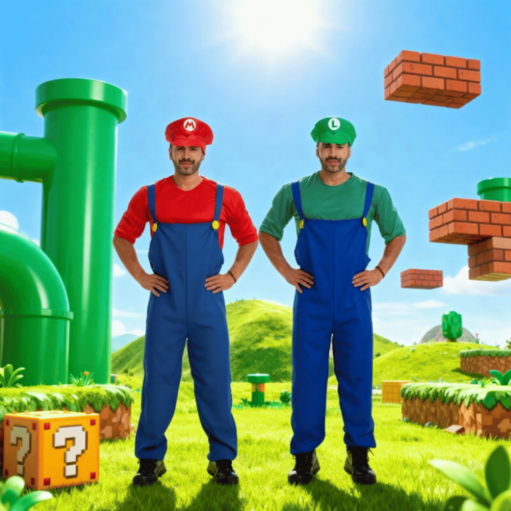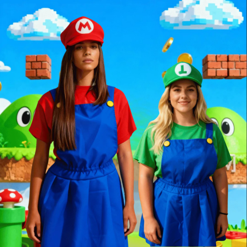 Fantasia Premium Mario Bros Masculino OU Fantasia do Luigi Masculino + Bigode + Quepe Envio Imediato