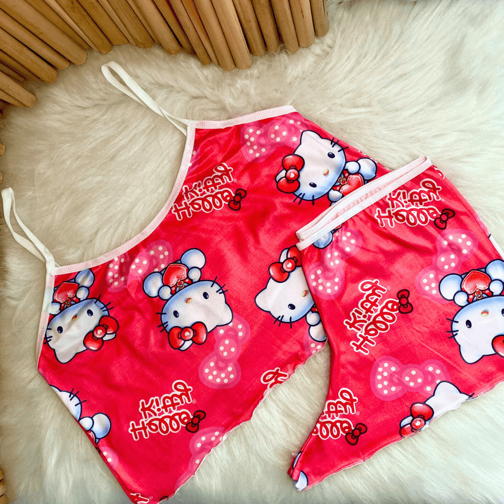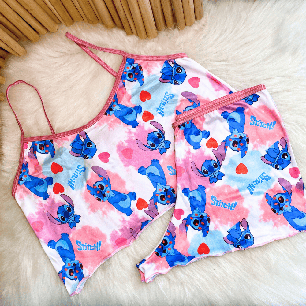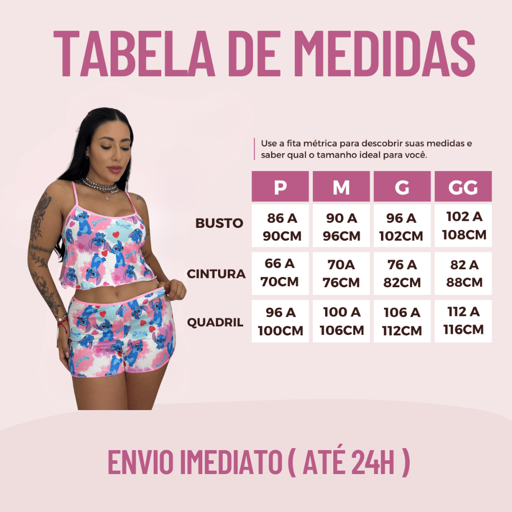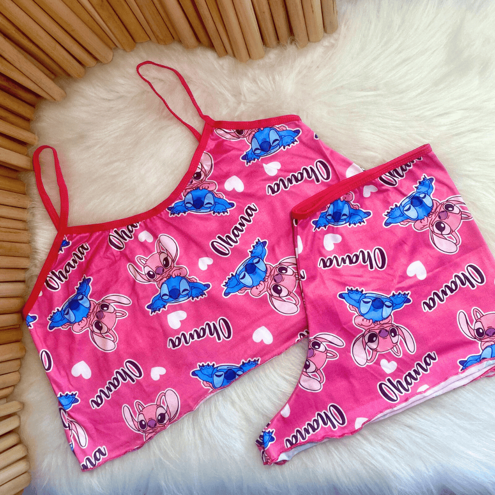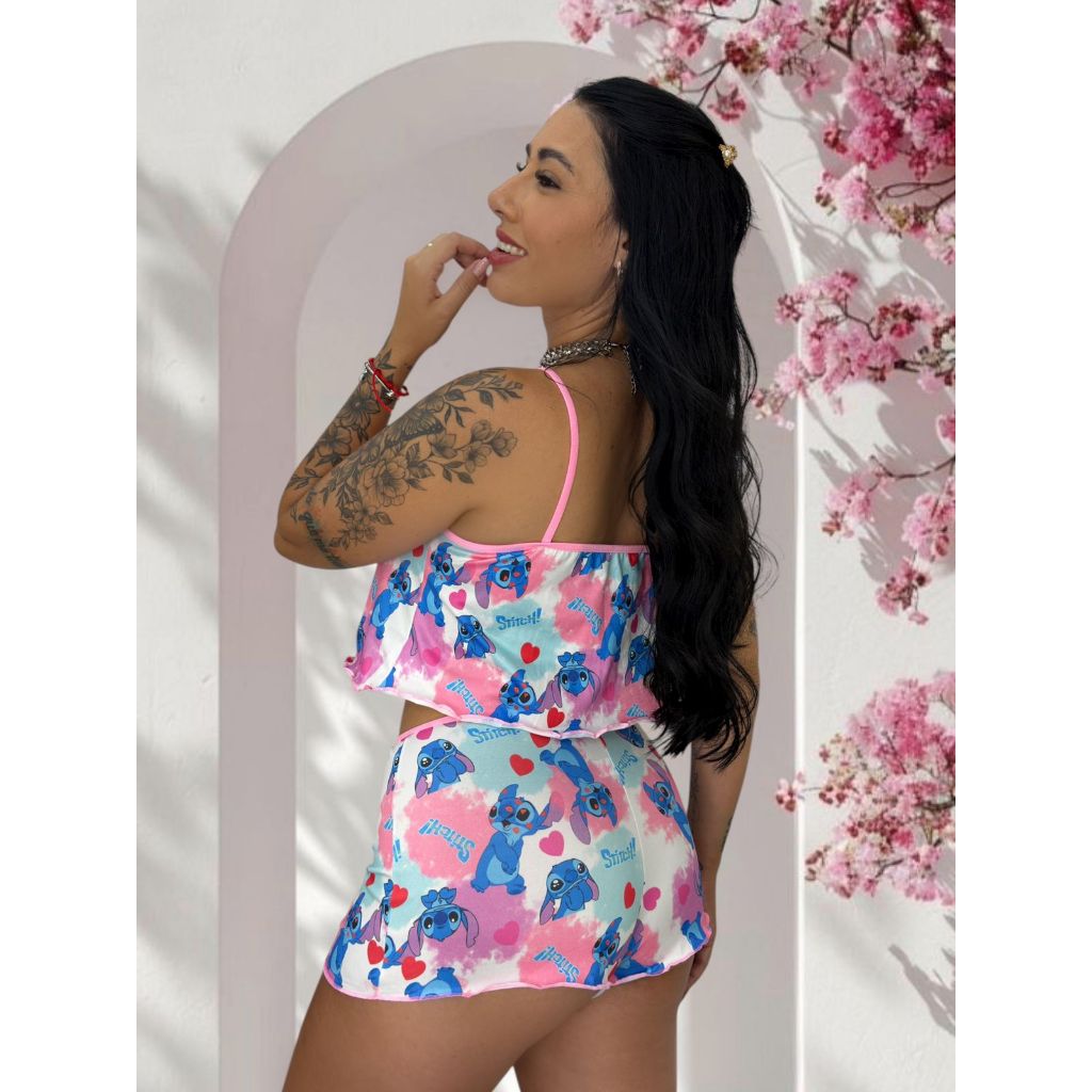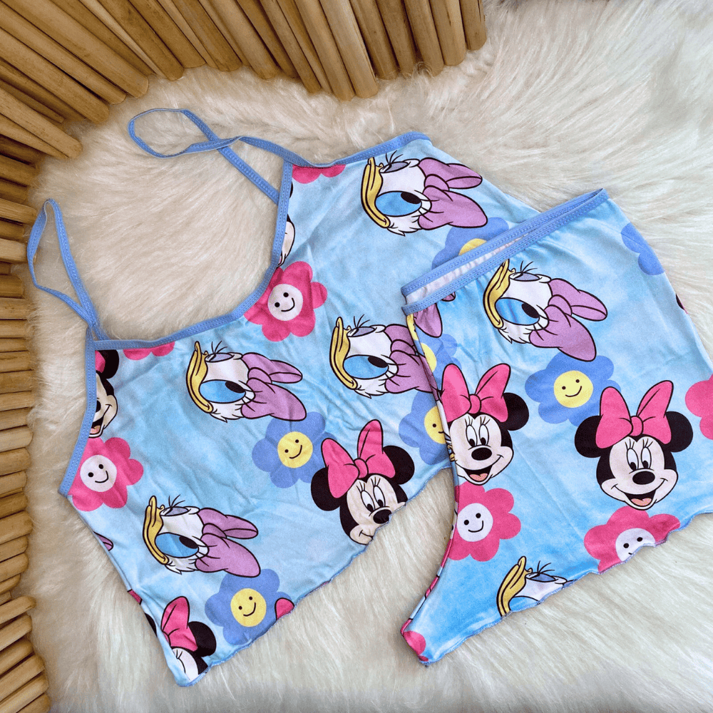Conjunto Baby Dool Personagens Estampado Blusa de Dormir Cropped Short