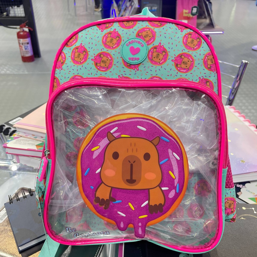 Mochila Infantil Costas Capivara E Rosquinha Frente em PVC Tamanho Médio Escolar 2026