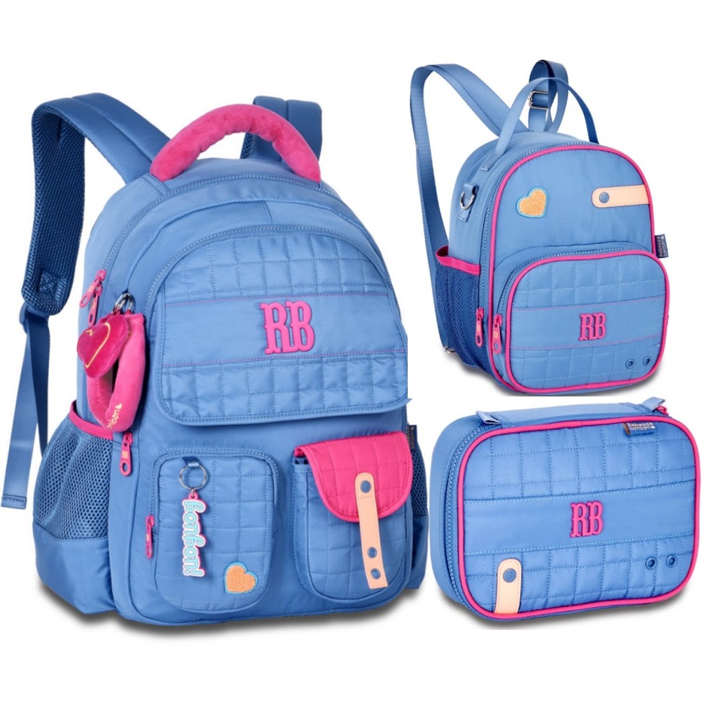 Kit Mochila de Costas Rebecca Bonbon Pelúcia Coleção Plush Dreams Charme e Aconchego Original Lancheira Térmica Estojo
