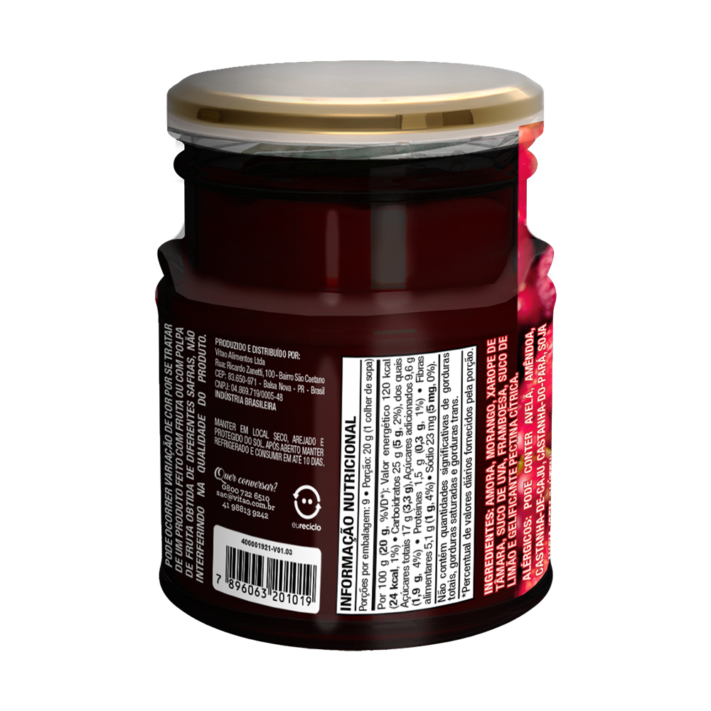 Geleia 100% Frutas Vermelhas Delakasa 180 g
