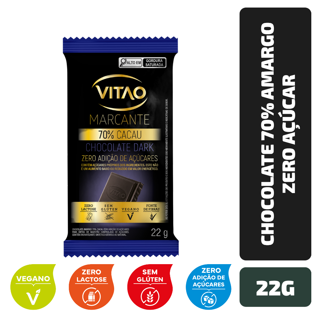 Chocolate 70% Amargo Zero Açúcar Marcante 22 g