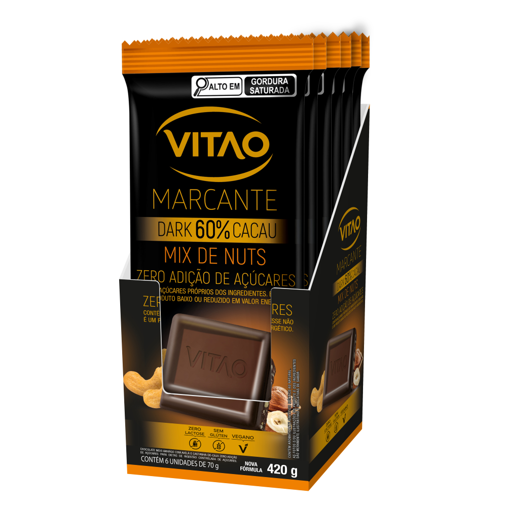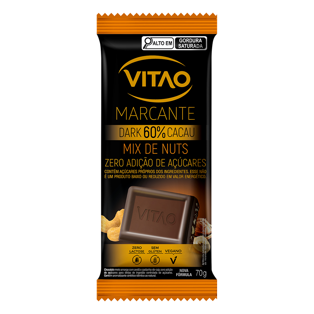 Kit Chocolate Meio Amargo Nuts Zero Açúcar Marcante 70G - 6 Unidades