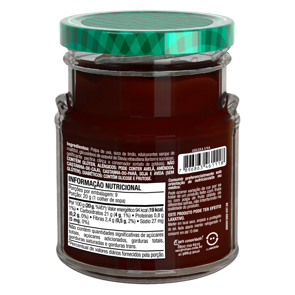 Kit Geleia Uva Zero Açúcar Vitao 180G - 3 Unidades